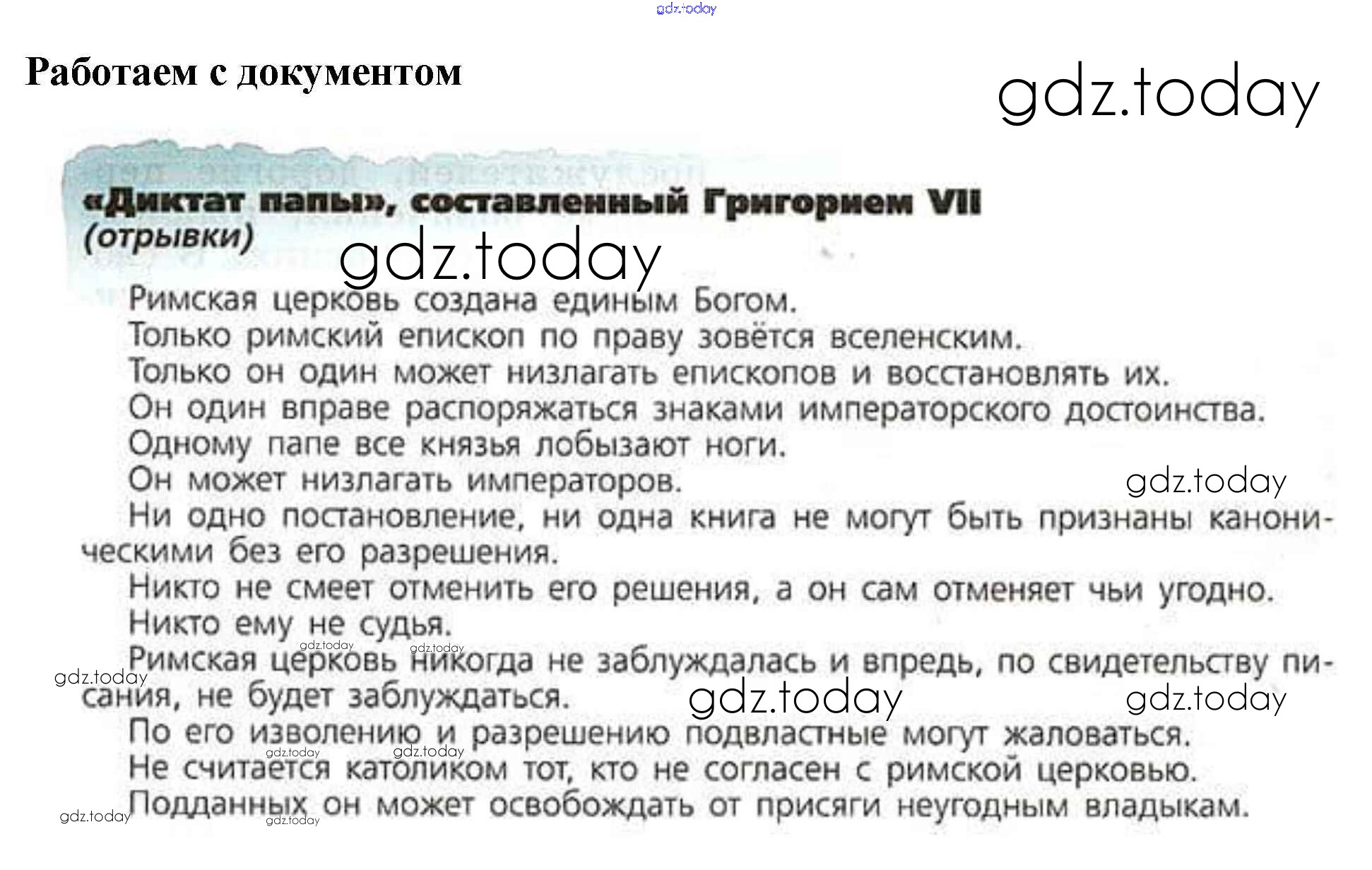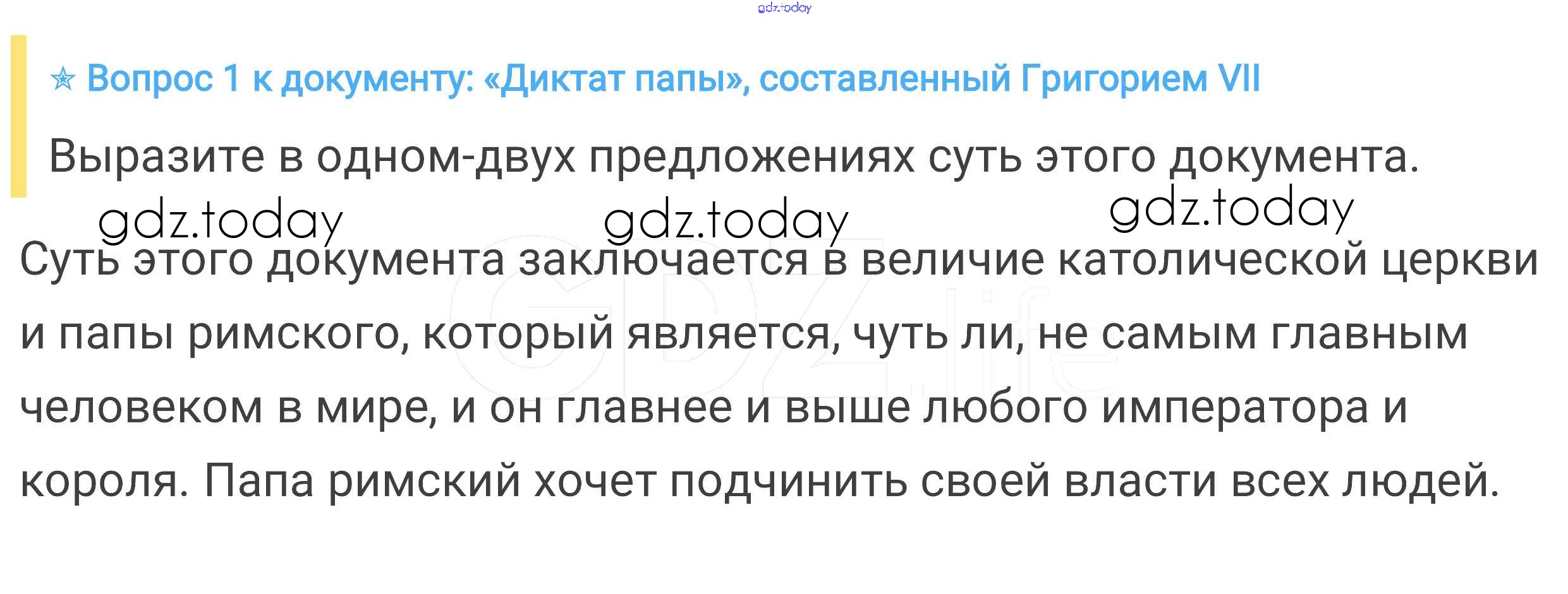 На страницах сайта gdz.today вы найдете учебный и вспомогательный материал, направленный на улучшения знаний школьной программы. ГДЗ - онлайн мир знаний Вопросы к документу § 16. Могущество папской власти. Католическая церковь и еретики 1 Учебнику по Всеобщей истории для 6 класса Агибалова, Донской Просвещение 2014