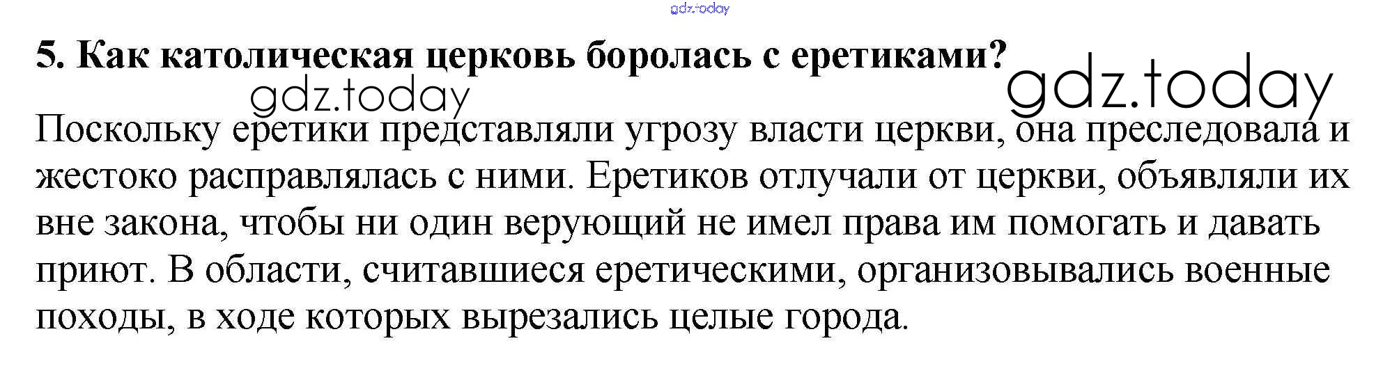 Ответы к Проверьте себя § 16. Могущество папской власти. Католическая церковь и еретики 5 Учебнику по Всеобщей истории для 6 класса Агибалова, Донской Просвещение 2014