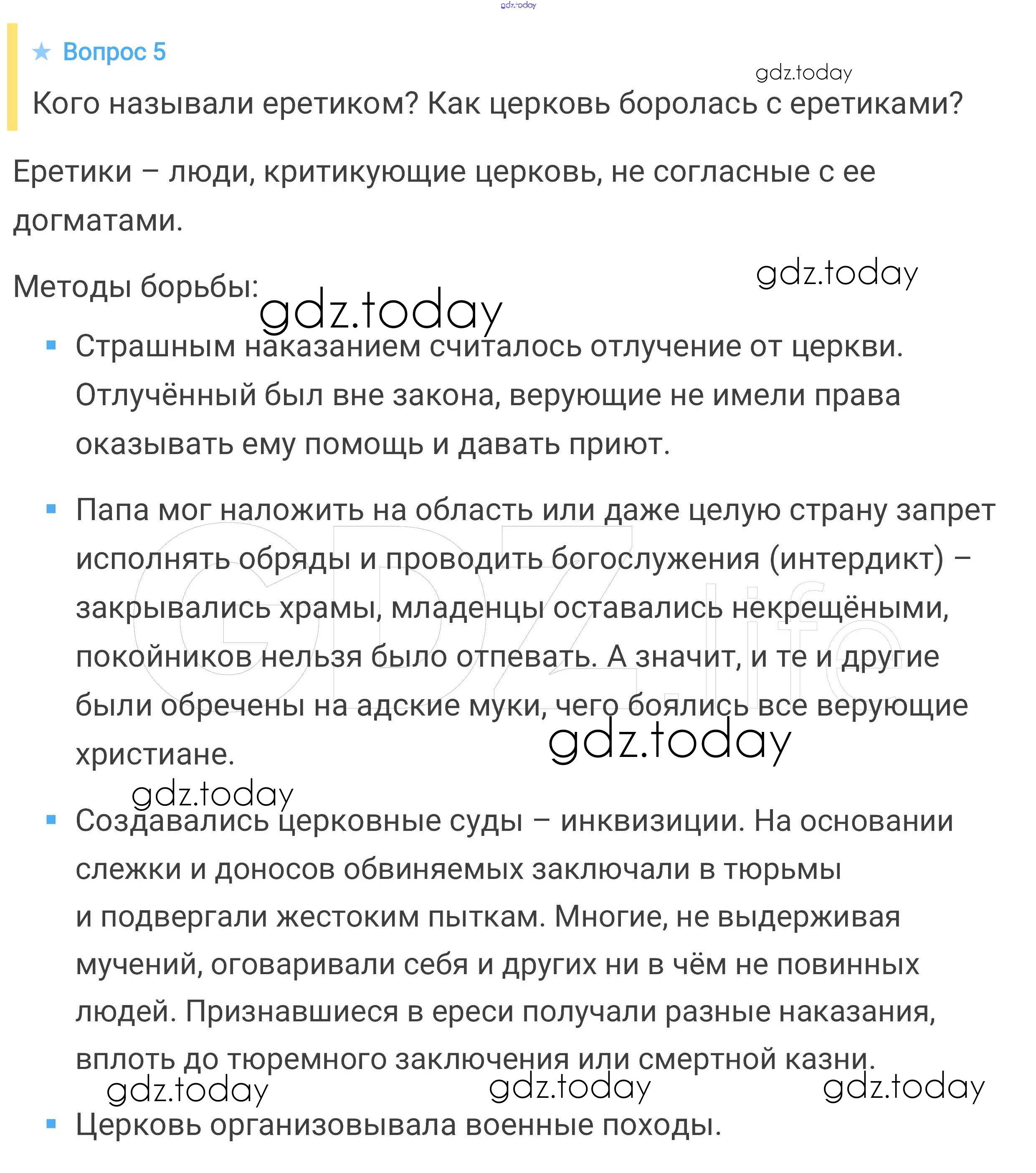 На страницах сайта gdz.today вы найдете учебный и вспомогательный материал, направленный на улучшения знаний школьной программы. ГДЗ - онлайн мир знаний Вопросы и задания к главе Решение к главе 6 5 Учебнику по Всеобщей истории для 6 класса Агибалова, Донской Просвещение 2014