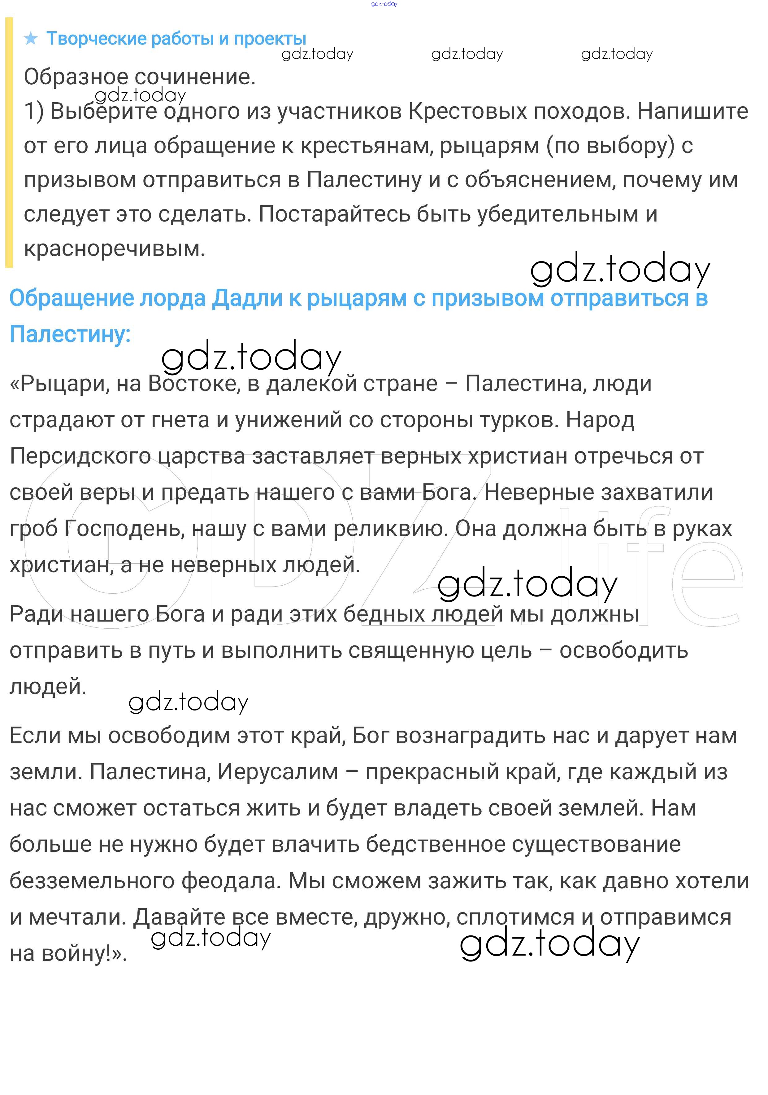 На страницах сайта gdz.today вы найдете учебный и вспомогательный материал, направленный на улучшения знаний школьной программы. ГДЗ - онлайн мир знаний Творческие работы и проекты Решение к главе 6 1 Учебнику по Всеобщей истории для 6 класса Агибалова, Донской Просвещение 2014