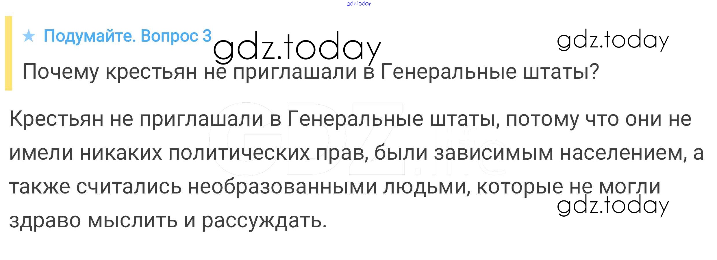 На страницах сайта gdz.today вы найдете учебный и вспомогательный материал, направленный на улучшения знаний школьной программы. ГДЗ - онлайн мир знаний Подумайте § 18. Как происходило объединение Франции 3 Учебнику по Всеобщей истории для 6 класса Агибалова, Донской Просвещение 2014