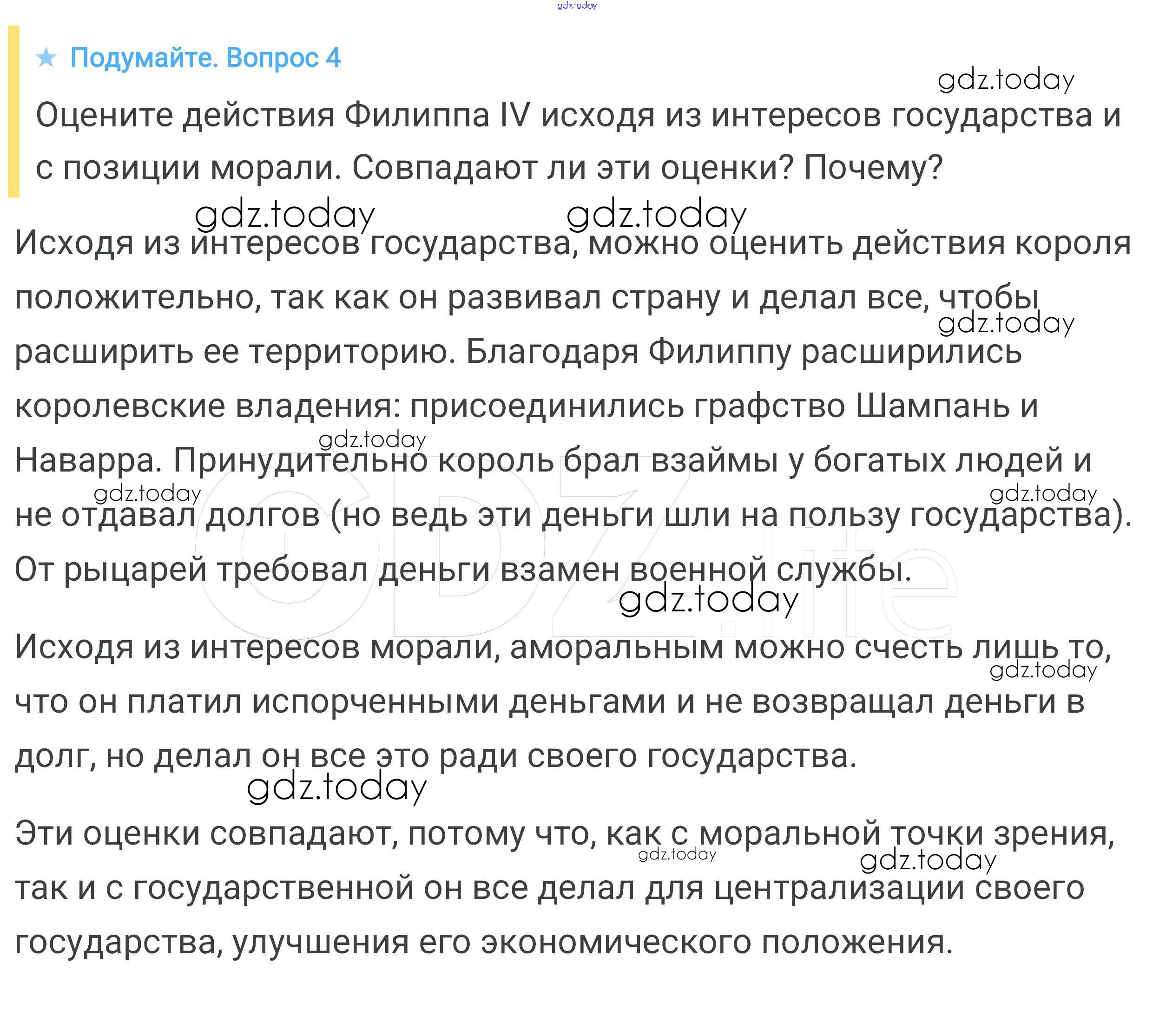 На страницах сайта gdz.today вы найдете учебный и вспомогательный материал, направленный на улучшения знаний школьной программы. ГДЗ - онлайн мир знаний Подумайте § 18. Как происходило объединение Франции 4 Учебнику по Всеобщей истории для 6 класса Агибалова, Донской Просвещение 2014