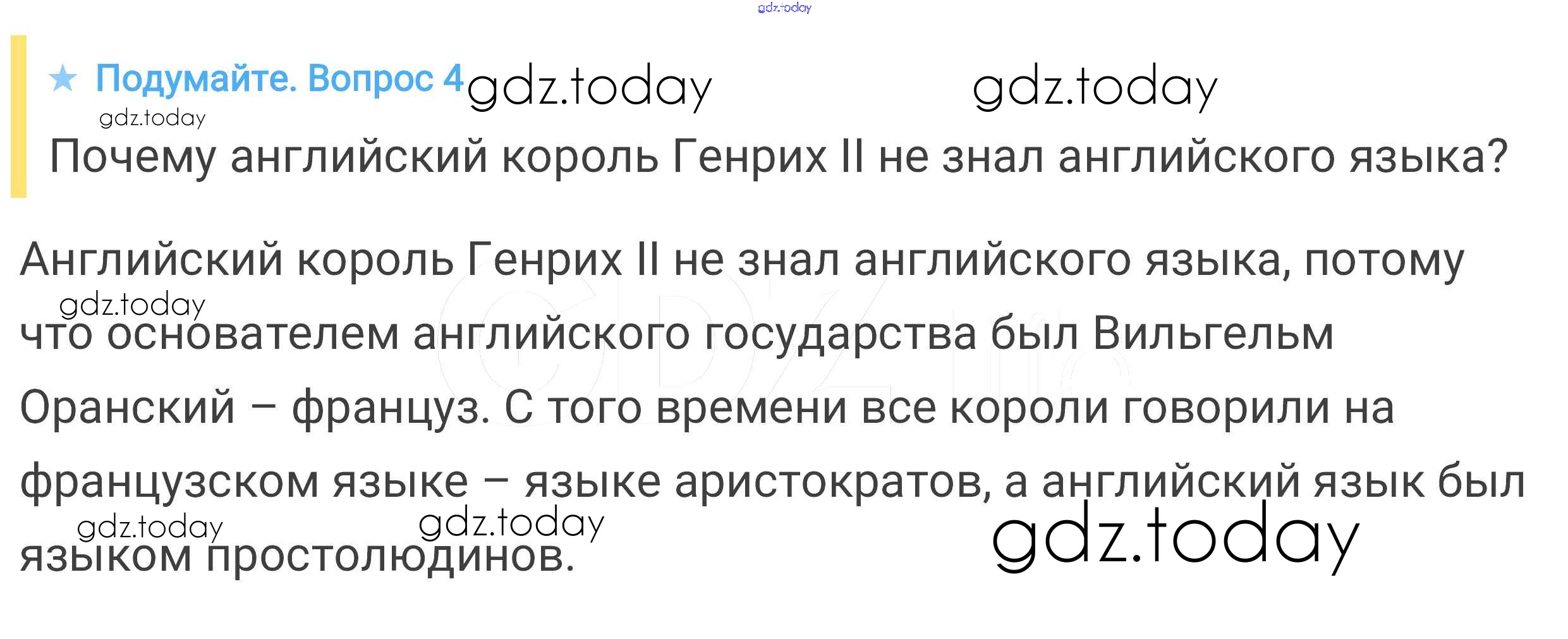 На страницах сайта gdz.today вы найдете учебный и вспомогательный материал, направленный на улучшения знаний школьной программы. ГДЗ - онлайн мир знаний Подумайте § 19. Что англичане считают началом своих свобод 4 Учебнику по Всеобщей истории для 6 класса Агибалова, Донской Просвещение 2014