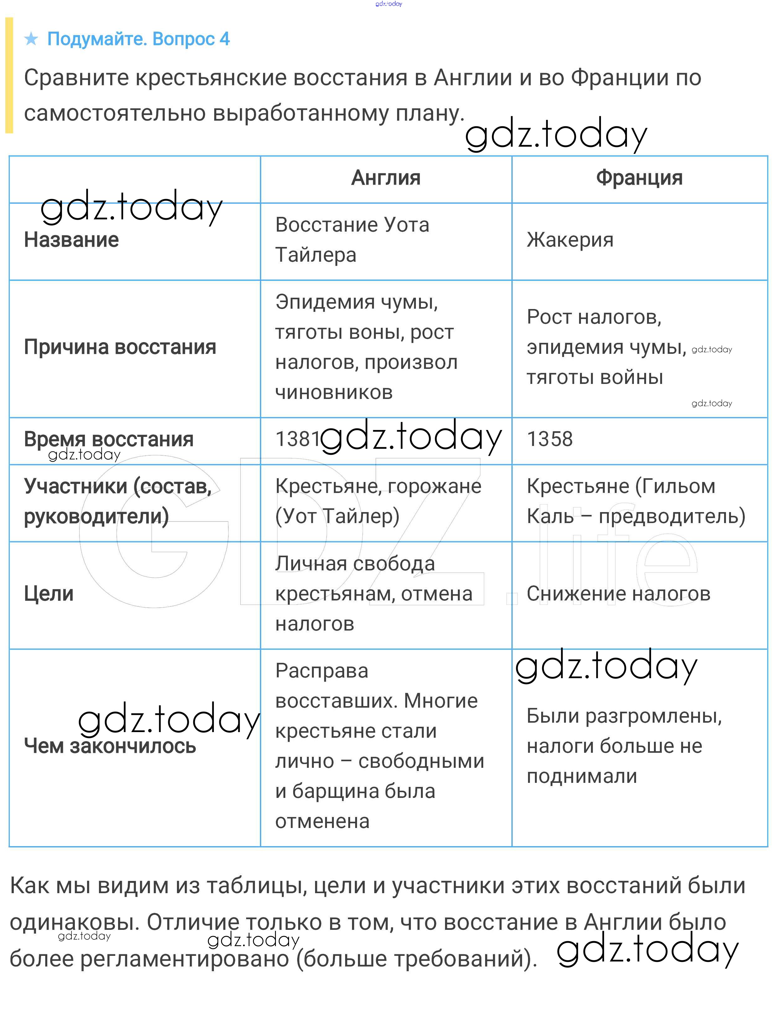 На страницах сайта gdz.today вы найдете учебный и вспомогательный материал, направленный на улучшения знаний школьной программы. ГДЗ - онлайн мир знаний Подумайте § 20. Столетняя война 4 Учебнику по Всеобщей истории для 6 класса Агибалова, Донской Просвещение 2014