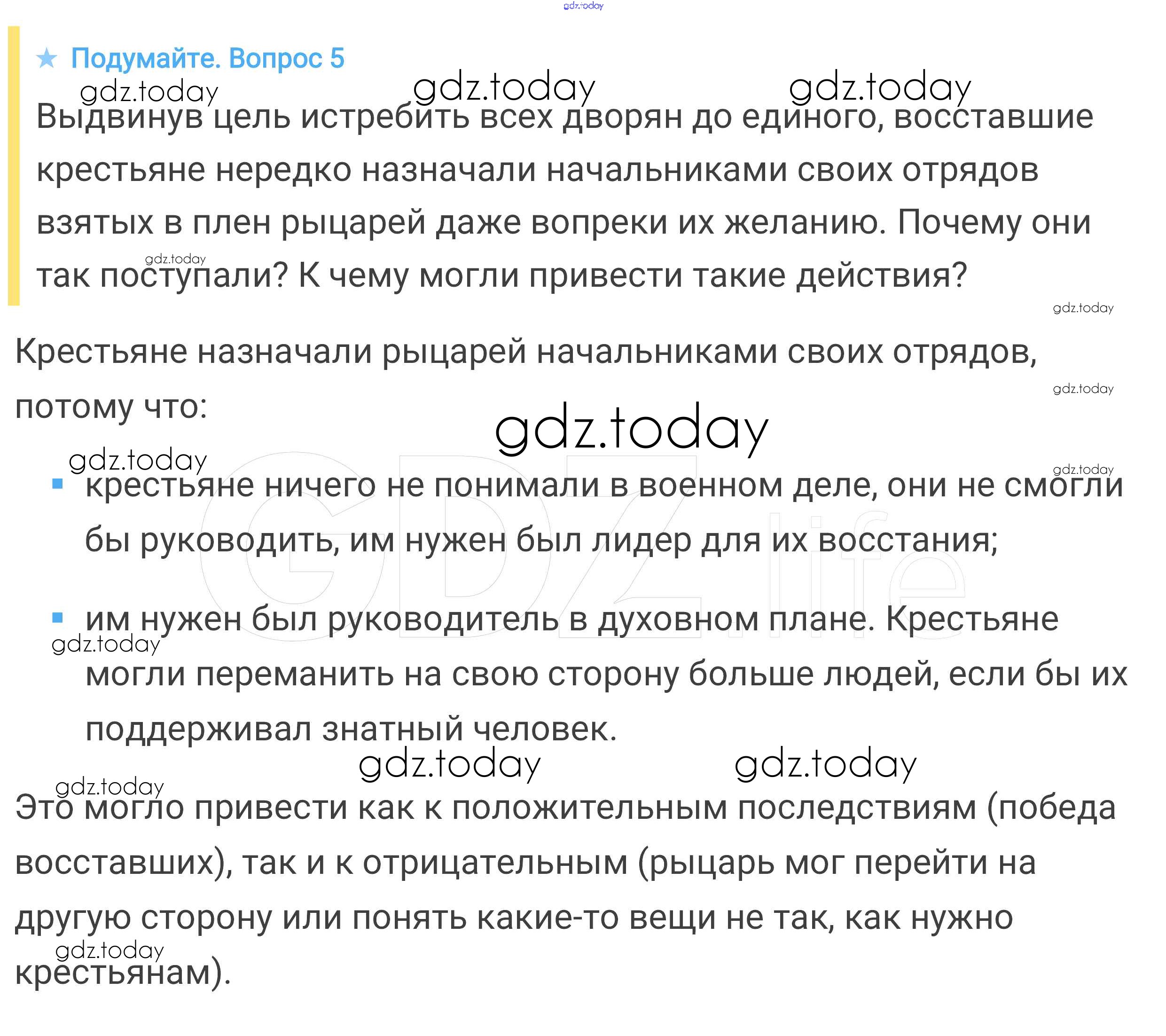 На страницах сайта gdz.today вы найдете учебный и вспомогательный материал, направленный на улучшения знаний школьной программы. ГДЗ - онлайн мир знаний Подумайте § 20. Столетняя война 5 Учебнику по Всеобщей истории для 6 класса Агибалова, Донской Просвещение 2014