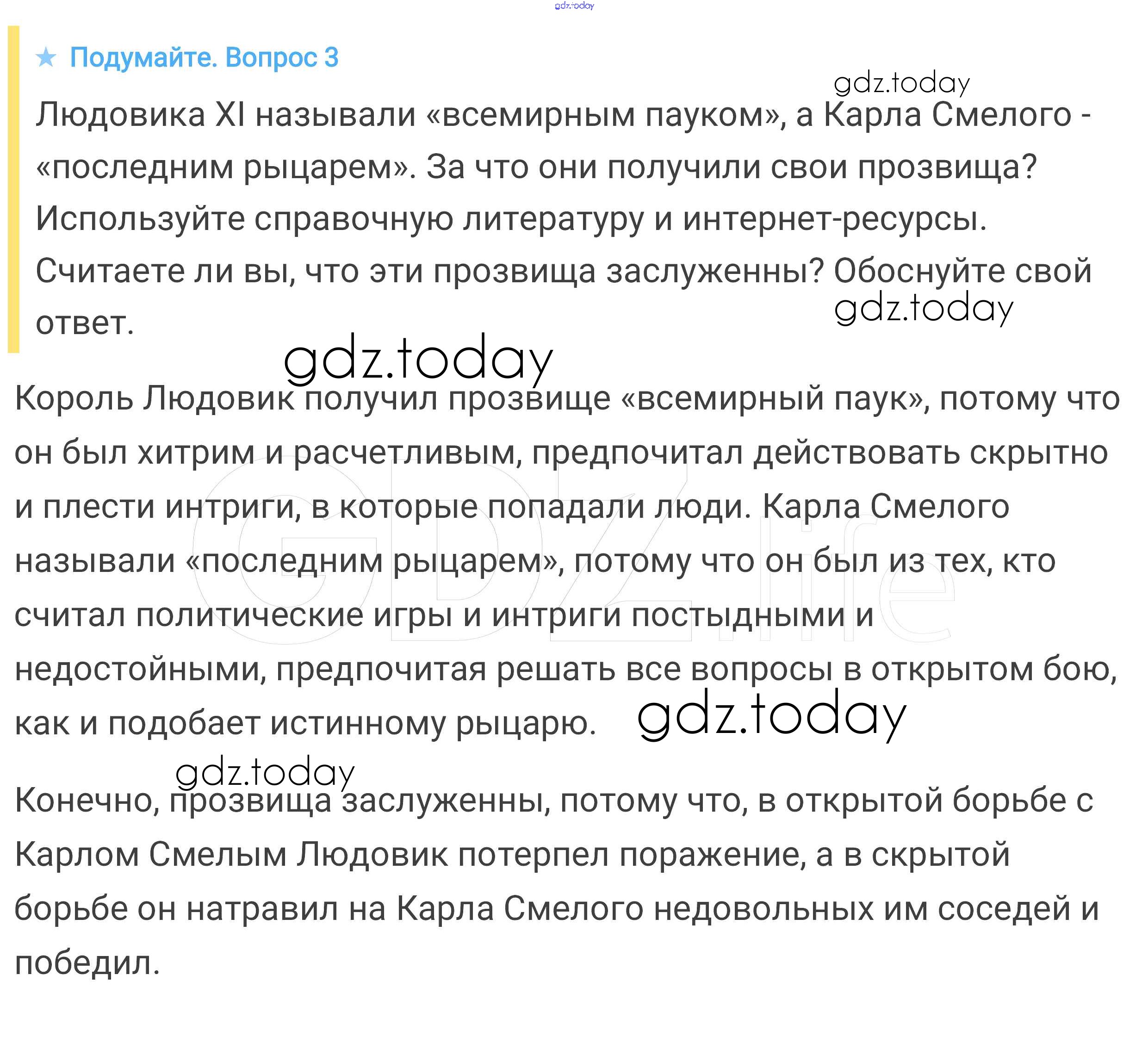На страницах сайта gdz.today вы найдете учебный и вспомогательный материал, направленный на улучшения знаний школьной программы. ГДЗ - онлайн мир знаний Подумайте § 21. Усиление королевской власти в конце XV века во Франции и в Англии 3 Учебнику по Всеобщей истории для 6 класса Агибалова, Донской Просвещение 2014