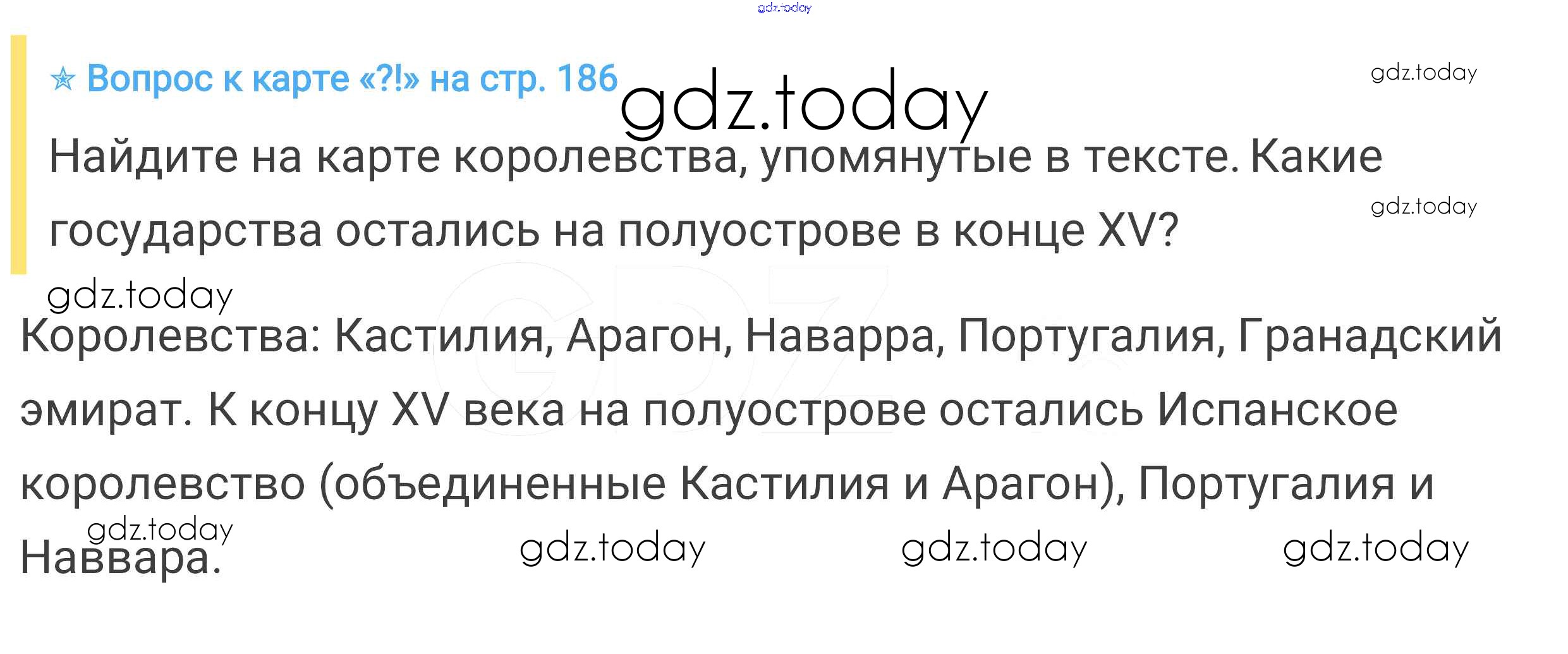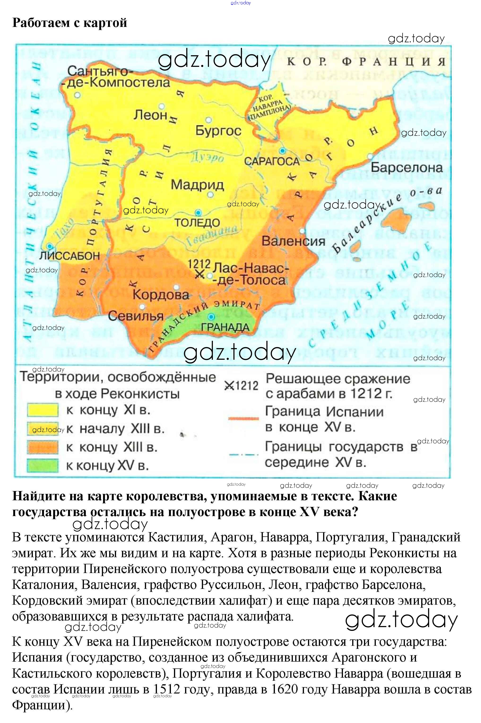На страницах сайта gdz.today вы найдете учебный и вспомогательный материал, направленный на улучшения знаний школьной программы. ГДЗ - онлайн мир знаний Вопросы к карте § 22. Реконкиста и образование централизованных государств на Пиренейском полуострове 1 Учебнику по Всеобщей истории для 6 класса Агибалова, Донской Просвещение 2014