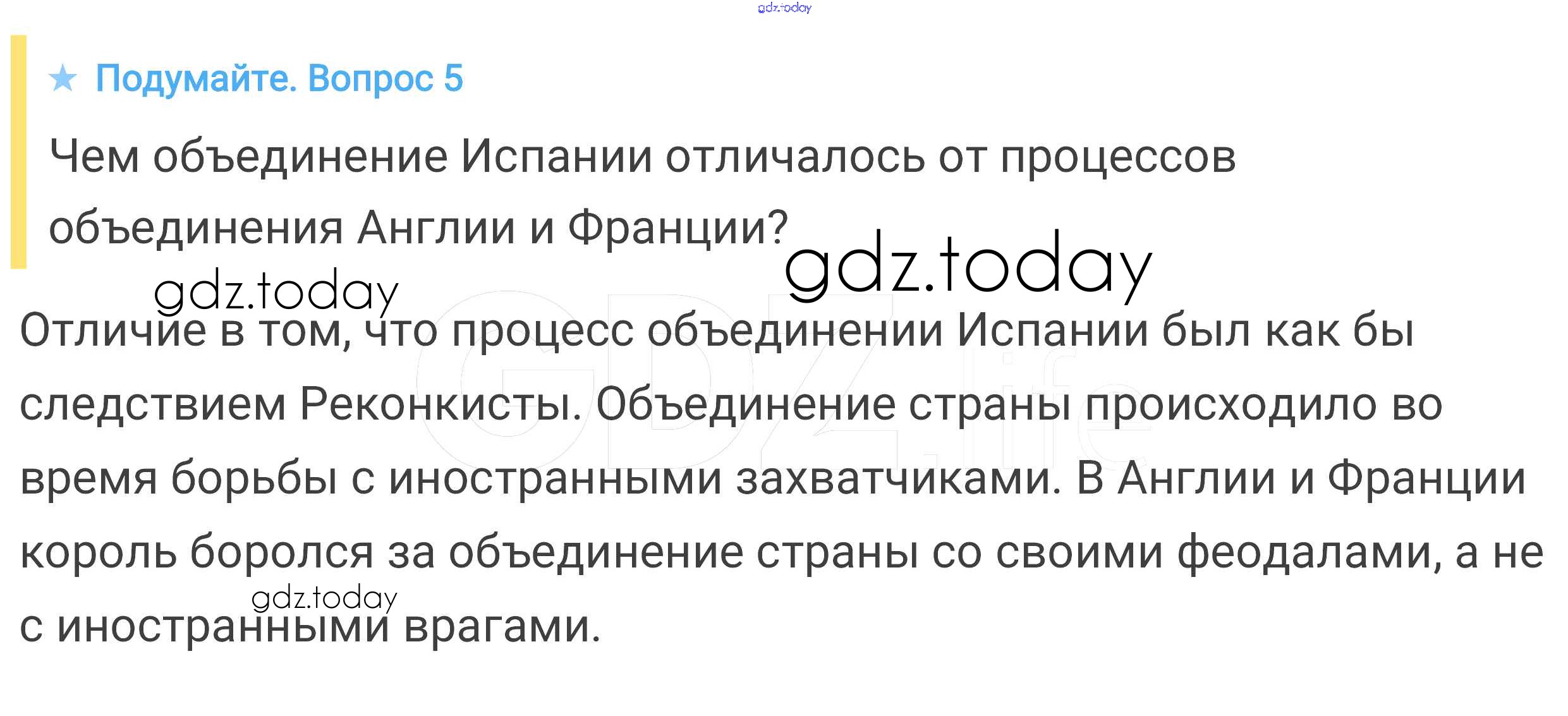 На страницах сайта gdz.today вы найдете учебный и вспомогательный материал, направленный на улучшения знаний школьной программы. ГДЗ - онлайн мир знаний Подумайте § 22. Реконкиста и образование централизованных государств на Пиренейском полуострове 5 Учебнику по Всеобщей истории для 6 класса Агибалова, Донской Просвещение 2014