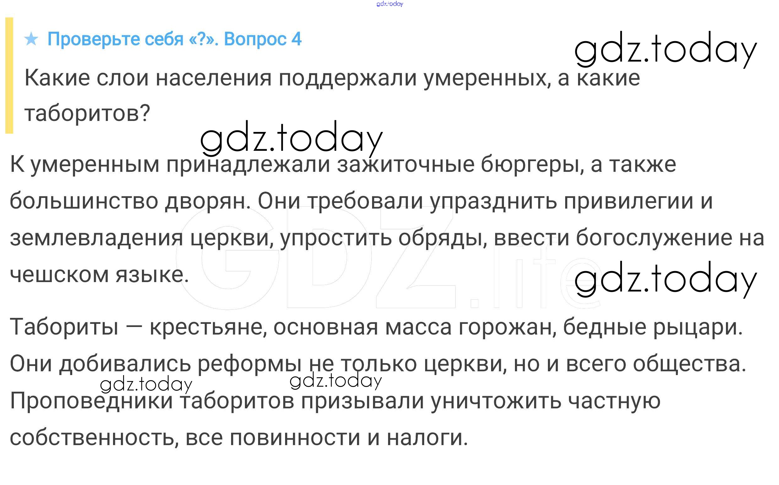 На страницах сайта gdz.today вы найдете учебный и вспомогательный материал, направленный на улучшения знаний школьной программы. ГДЗ - онлайн мир знаний Проверьте себя § 24. Гуситское движение в Чехии 4 Учебнику по Всеобщей истории для 6 класса Агибалова, Донской Просвещение 2014