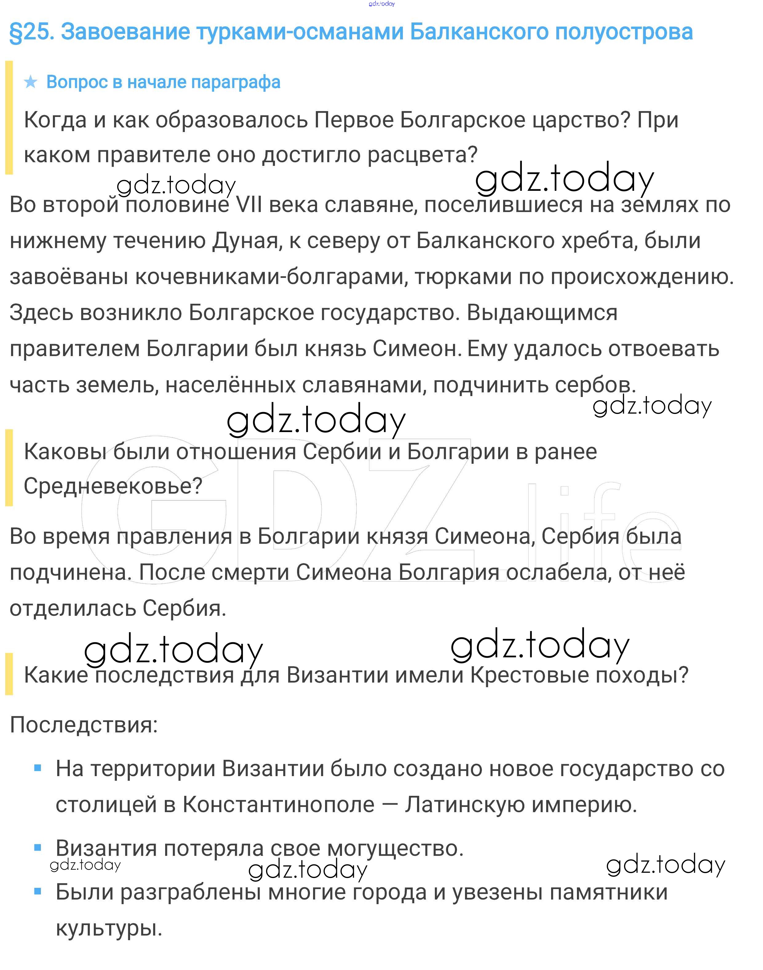 На страницах сайта gdz.today вы найдете учебный и вспомогательный материал, направленный на улучшения знаний школьной программы. ГДЗ - онлайн мир знаний Вопросы в начале параграфа § 25. Завоевание турками-османами Балканского полуострова 1 Учебнику по Всеобщей истории для 6 класса Агибалова, Донской Просвещение 2014