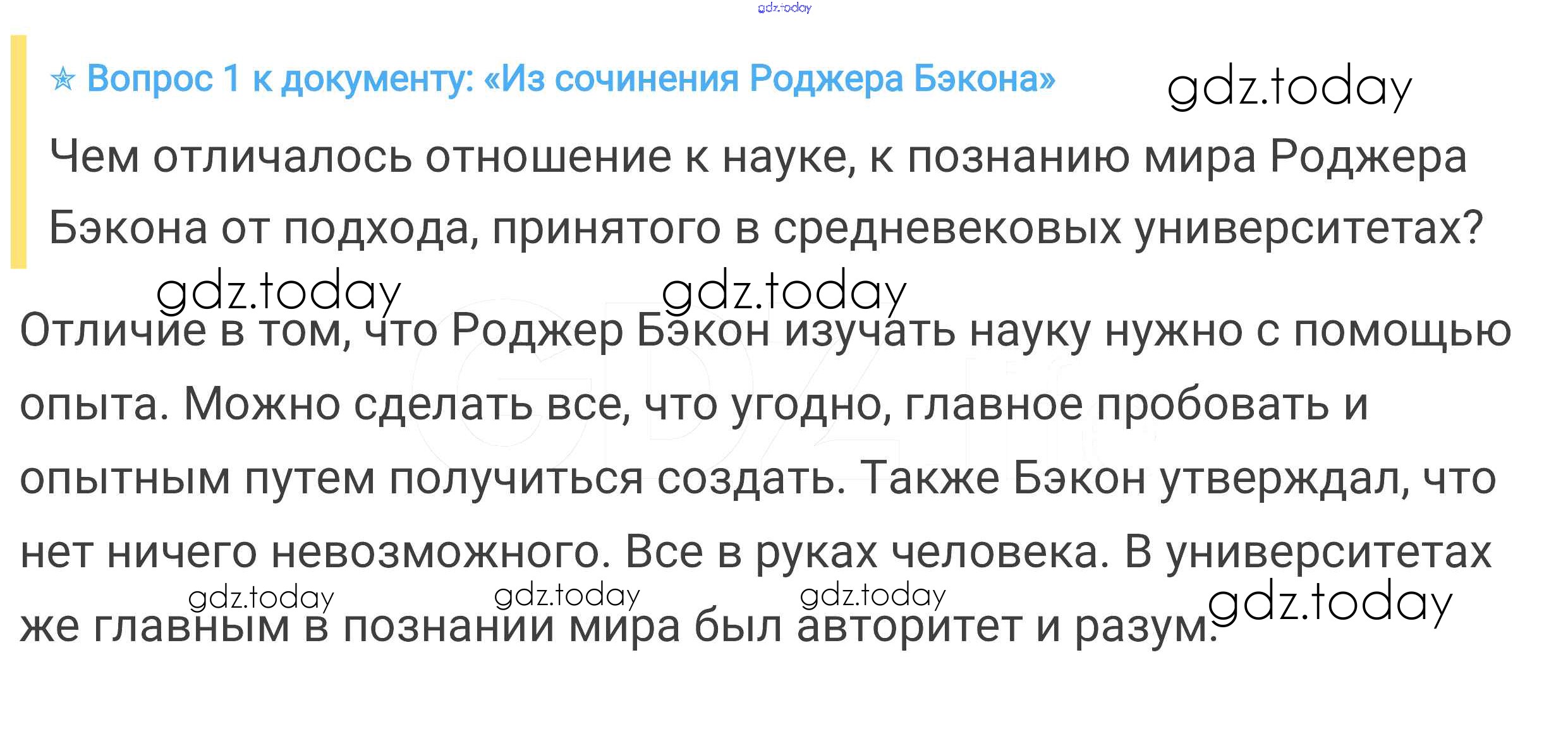 На страницах сайта gdz.today вы найдете учебный и вспомогательный материал, направленный на улучшения знаний школьной программы. ГДЗ - онлайн мир знаний Вопросы к документу § 26. Образование и философия 1 Учебнику по Всеобщей истории для 6 класса Агибалова, Донской Просвещение 2014