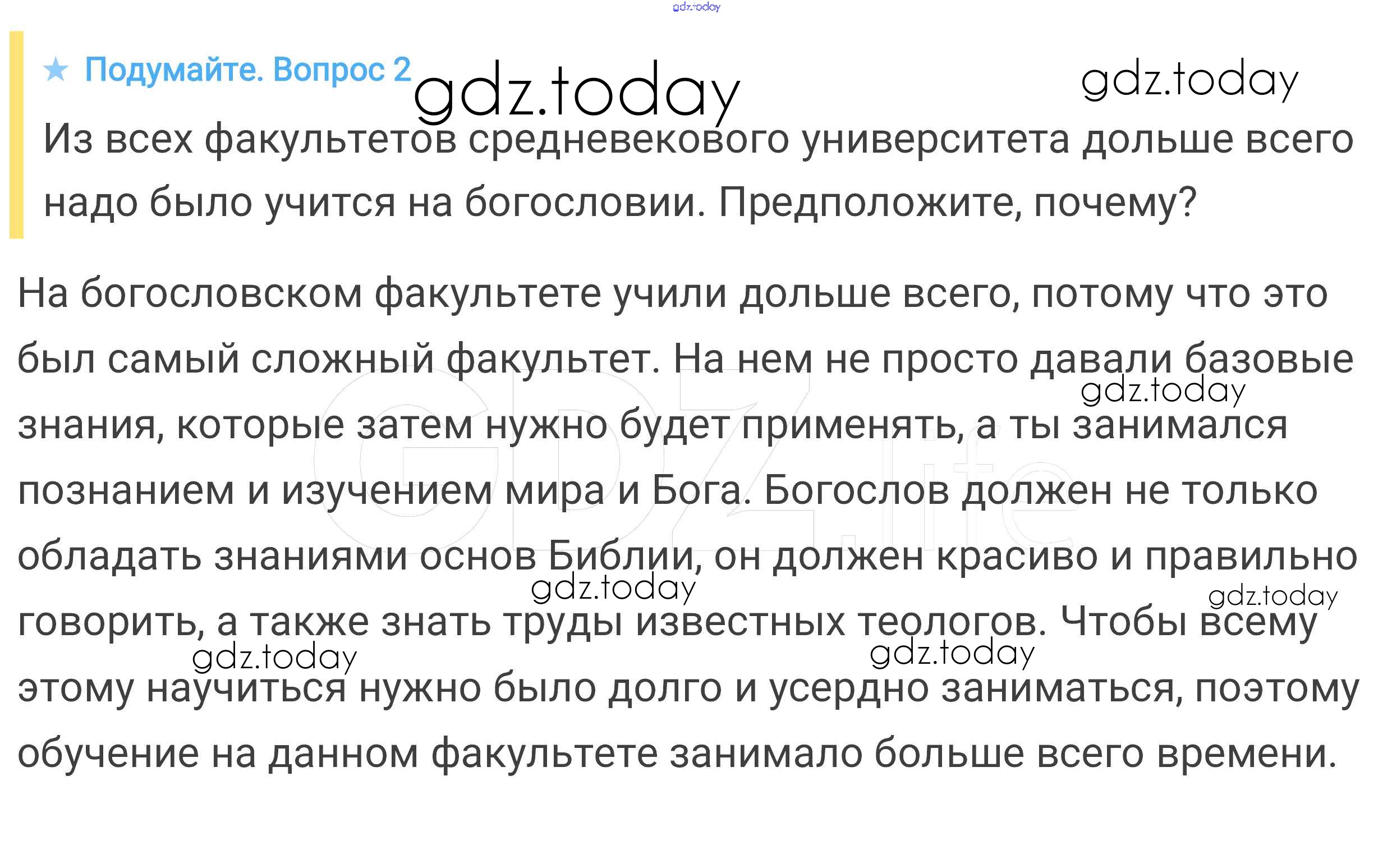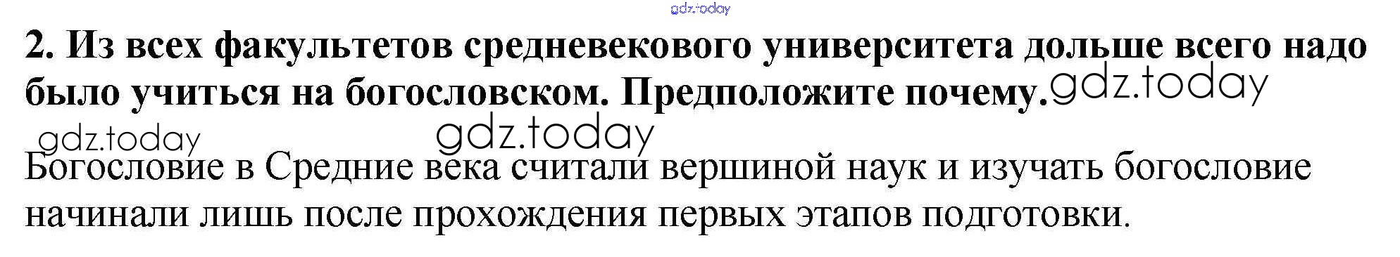 На страницах сайта gdz.today вы найдете учебный и вспомогательный материал, направленный на улучшения знаний школьной программы. ГДЗ - онлайн мир знаний Подумайте § 26. Образование и философия 2 Учебнику по Всеобщей истории для 6 класса Агибалова, Донской Просвещение 2014