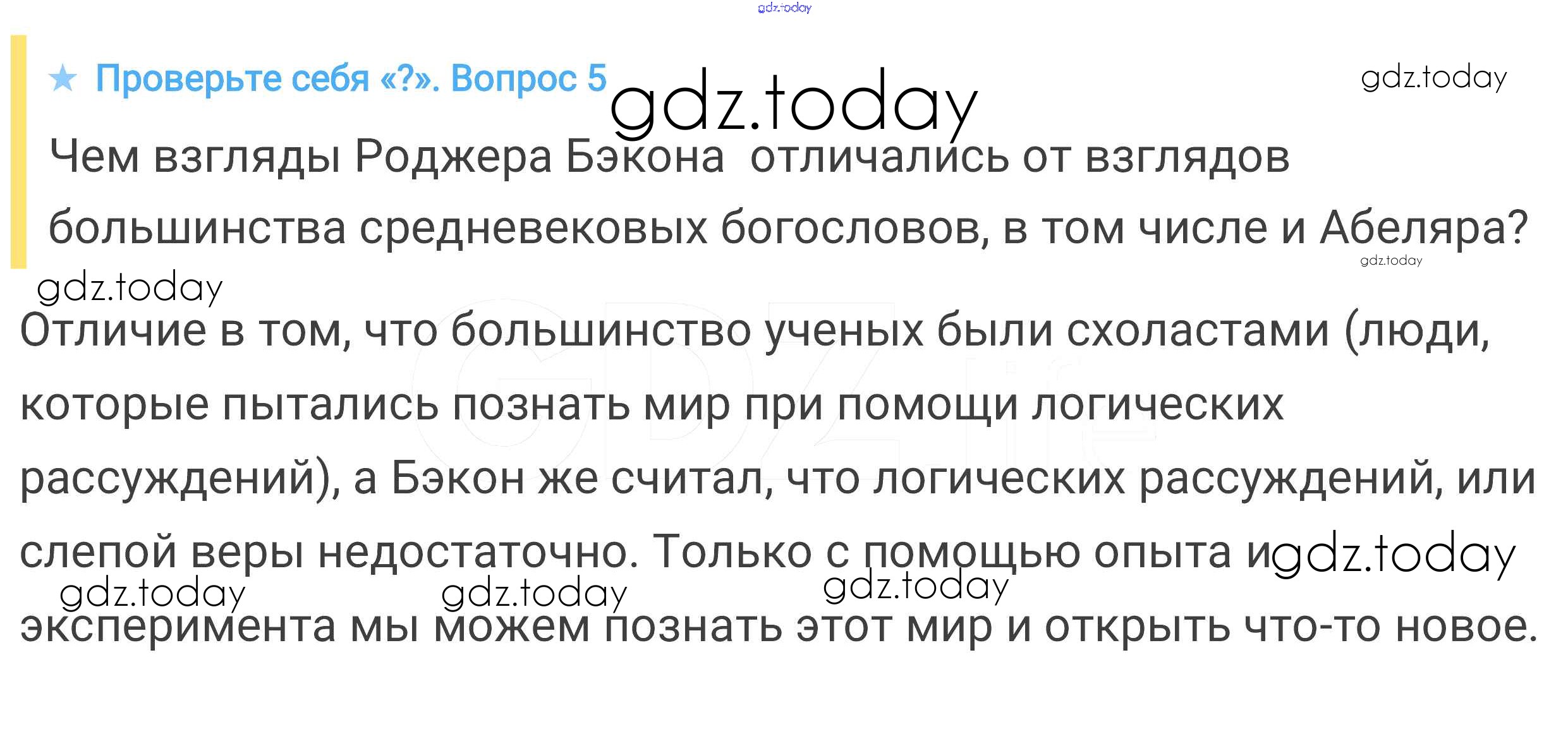 На страницах сайта gdz.today вы найдете учебный и вспомогательный материал, направленный на улучшения знаний школьной программы. ГДЗ - онлайн мир знаний Проверьте себя § 26. Образование и философия 5 Учебнику по Всеобщей истории для 6 класса Агибалова, Донской Просвещение 2014