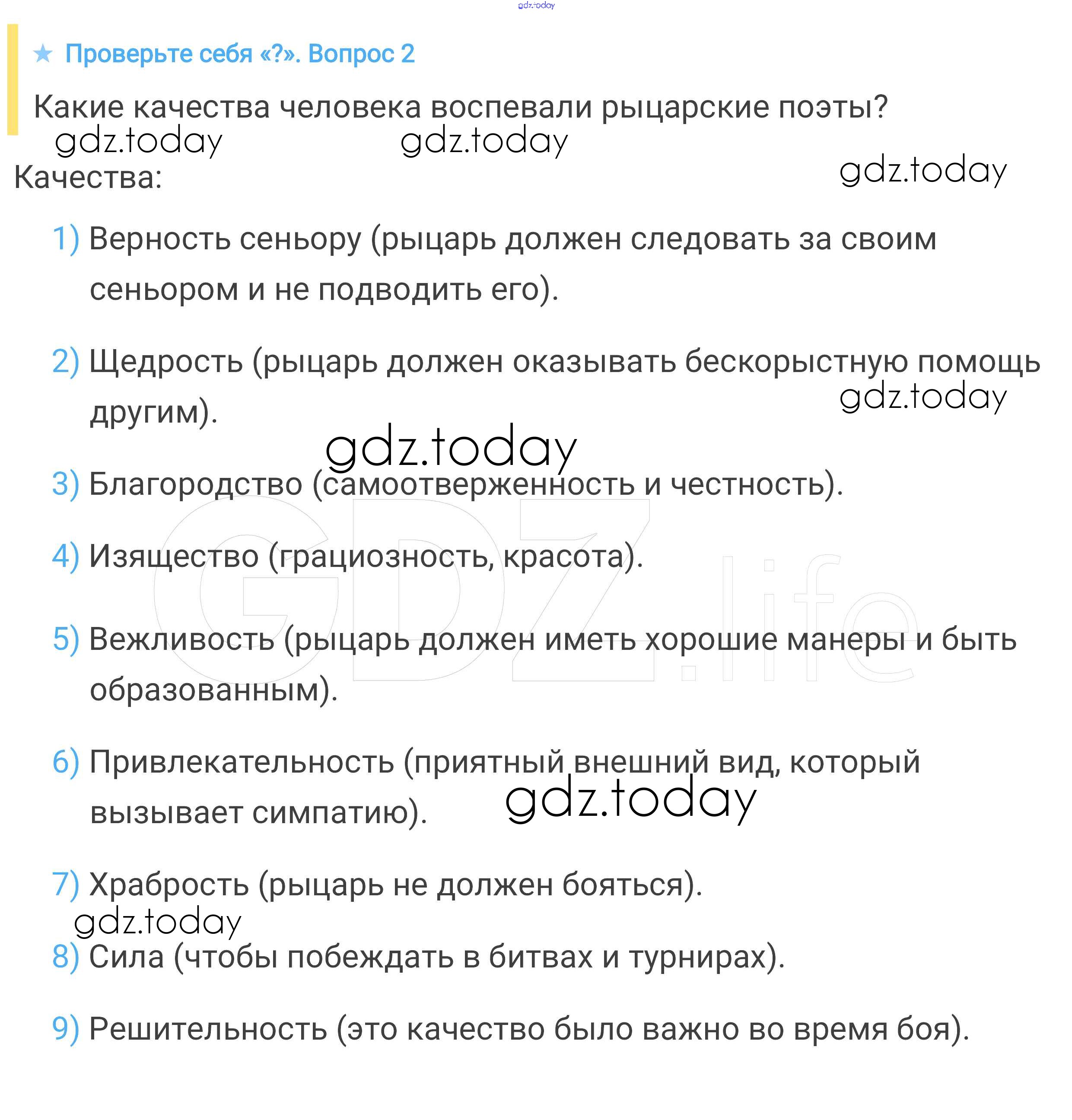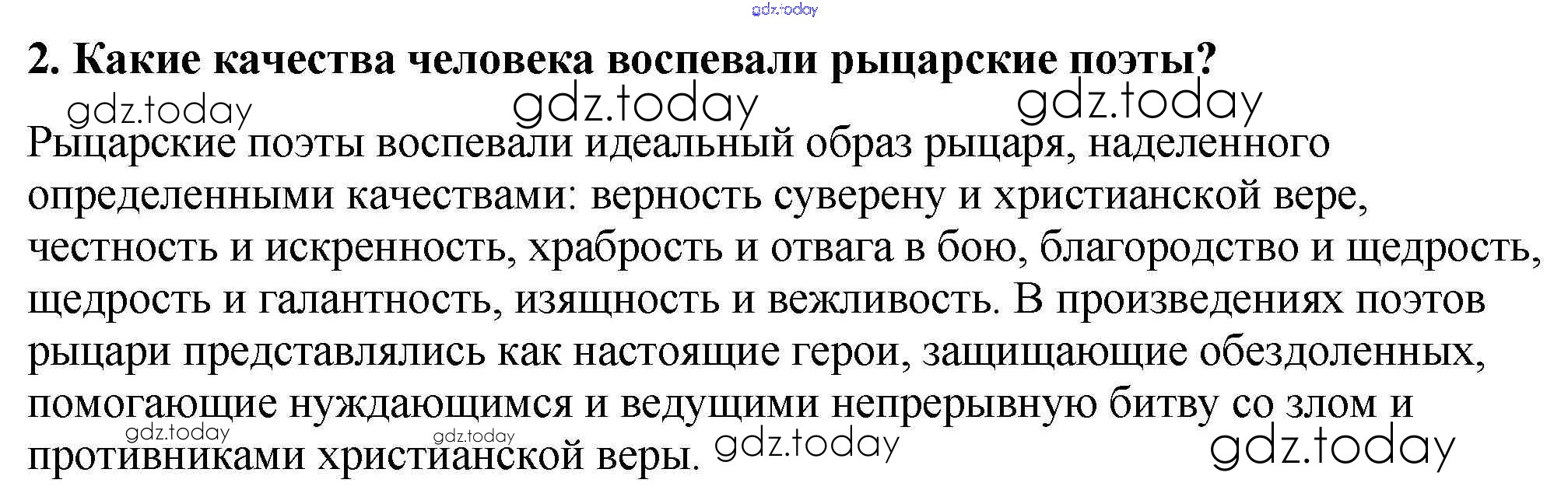 На страницах сайта gdz.today вы найдете учебный и вспомогательный материал, направленный на улучшения знаний школьной программы. ГДЗ - онлайн мир знаний Проверьте себя § 27. Средневековая литература 2 Учебнику по Всеобщей истории для 6 класса Агибалова, Донской Просвещение 2014