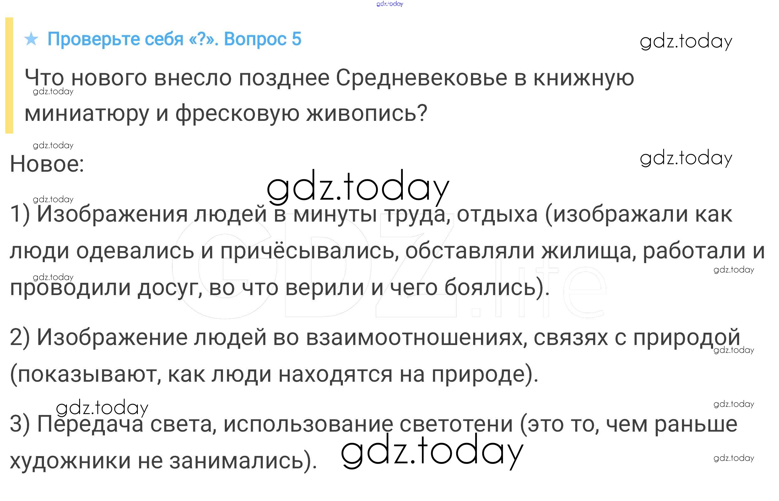 На страницах сайта gdz.today вы найдете учебный и вспомогательный материал, направленный на улучшения знаний школьной программы. ГДЗ - онлайн мир знаний Проверьте себя § 28. Средневековое искусство 5 Учебнику по Всеобщей истории для 6 класса Агибалова, Донской Просвещение 2014