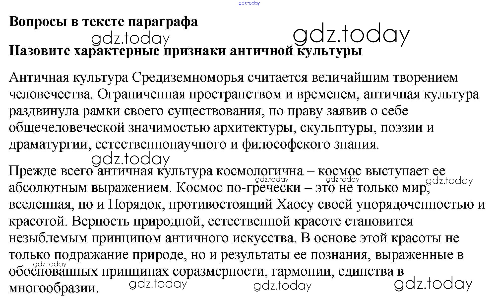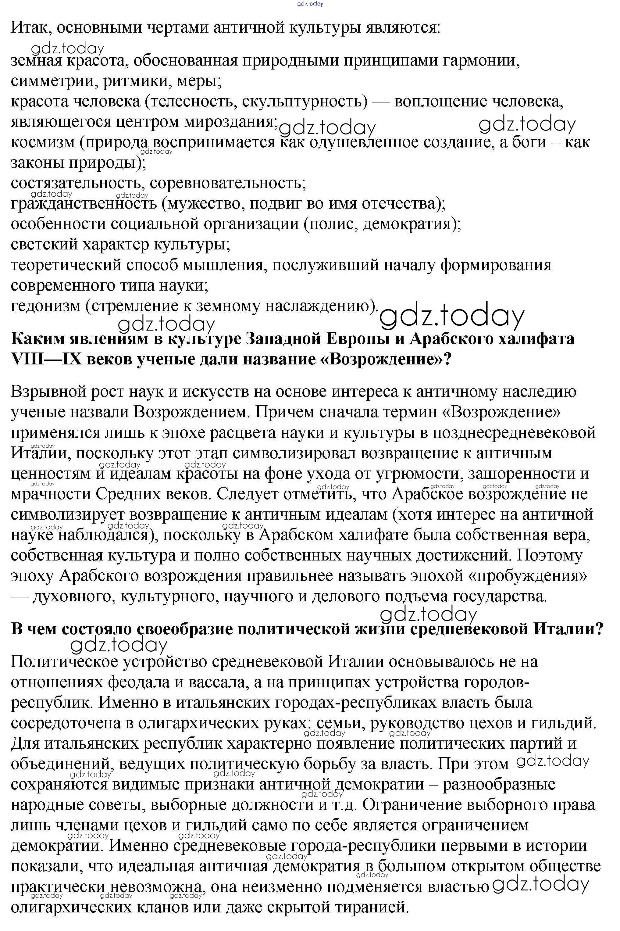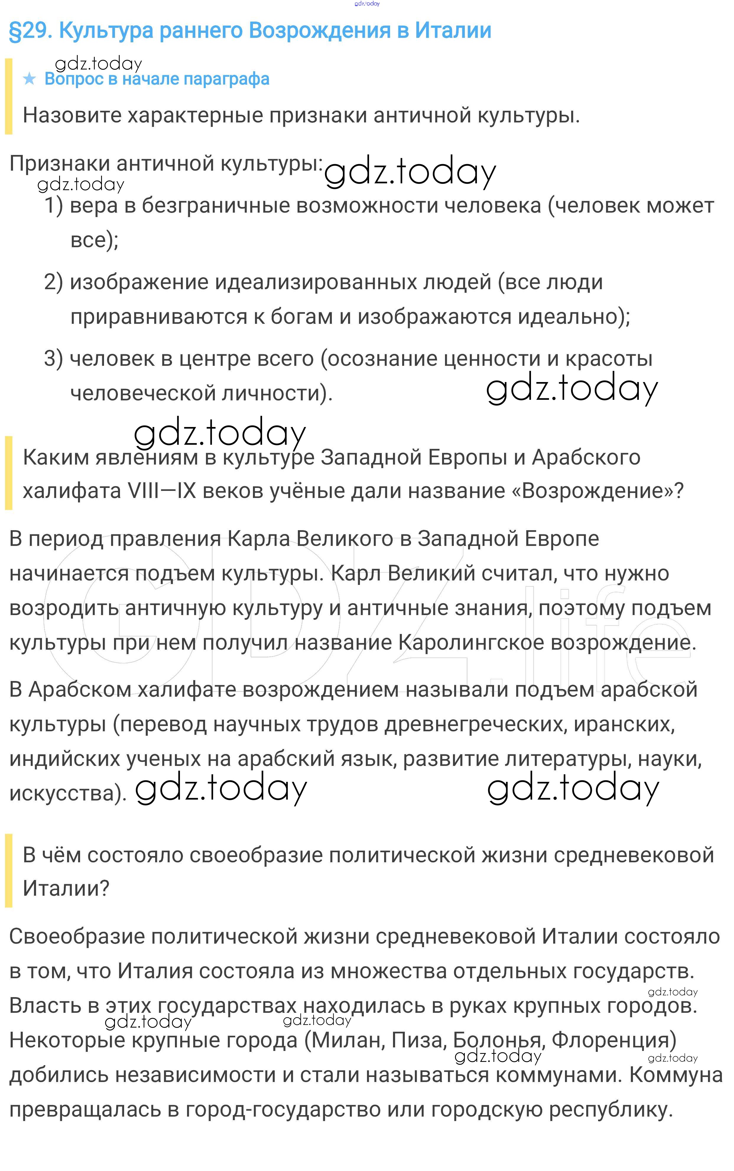 На страницах сайта gdz.today вы найдете учебный и вспомогательный материал, направленный на улучшения знаний школьной программы. ГДЗ - онлайн мир знаний Вопросы в начале параграфа § 29. Культура раннего Возрождения в Италии 1 Учебнику по Всеобщей истории для 6 класса Агибалова, Донской Просвещение 2014