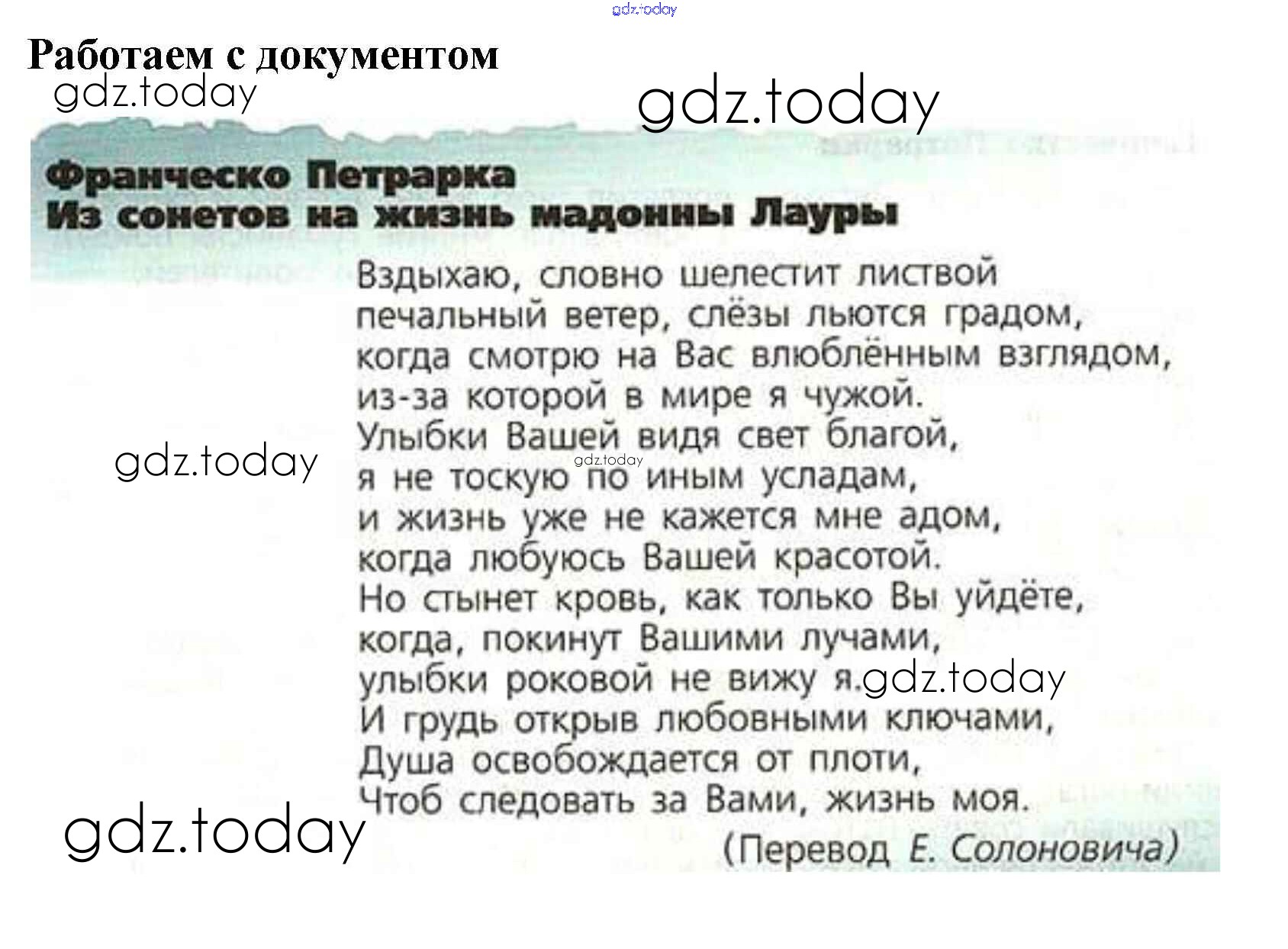На страницах сайта gdz.today вы найдете учебный и вспомогательный материал, направленный на улучшения знаний школьной программы. ГДЗ - онлайн мир знаний Вопросы к документу § 29. Культура раннего Возрождения в Италии 1 Учебнику по Всеобщей истории для 6 класса Агибалова, Донской Просвещение 2014