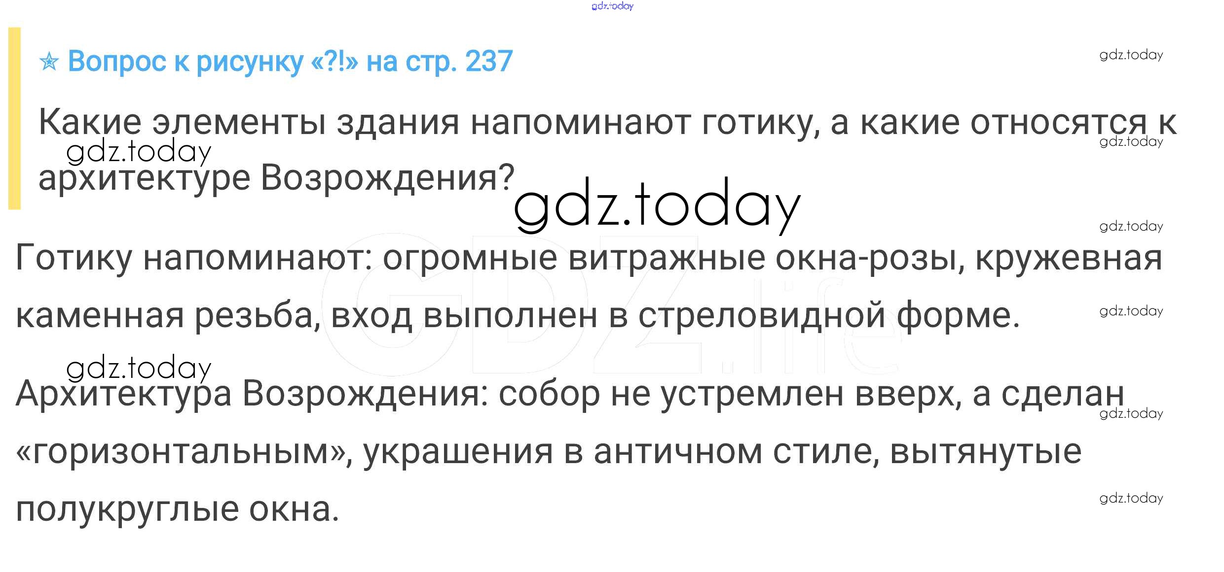 На страницах сайта gdz.today вы найдете учебный и вспомогательный материал, направленный на улучшения знаний школьной программы. ГДЗ - онлайн мир знаний Вопросы к рисункам § 29. Культура раннего Возрождения в Италии 1 Учебнику по Всеобщей истории для 6 класса Агибалова, Донской Просвещение 2014