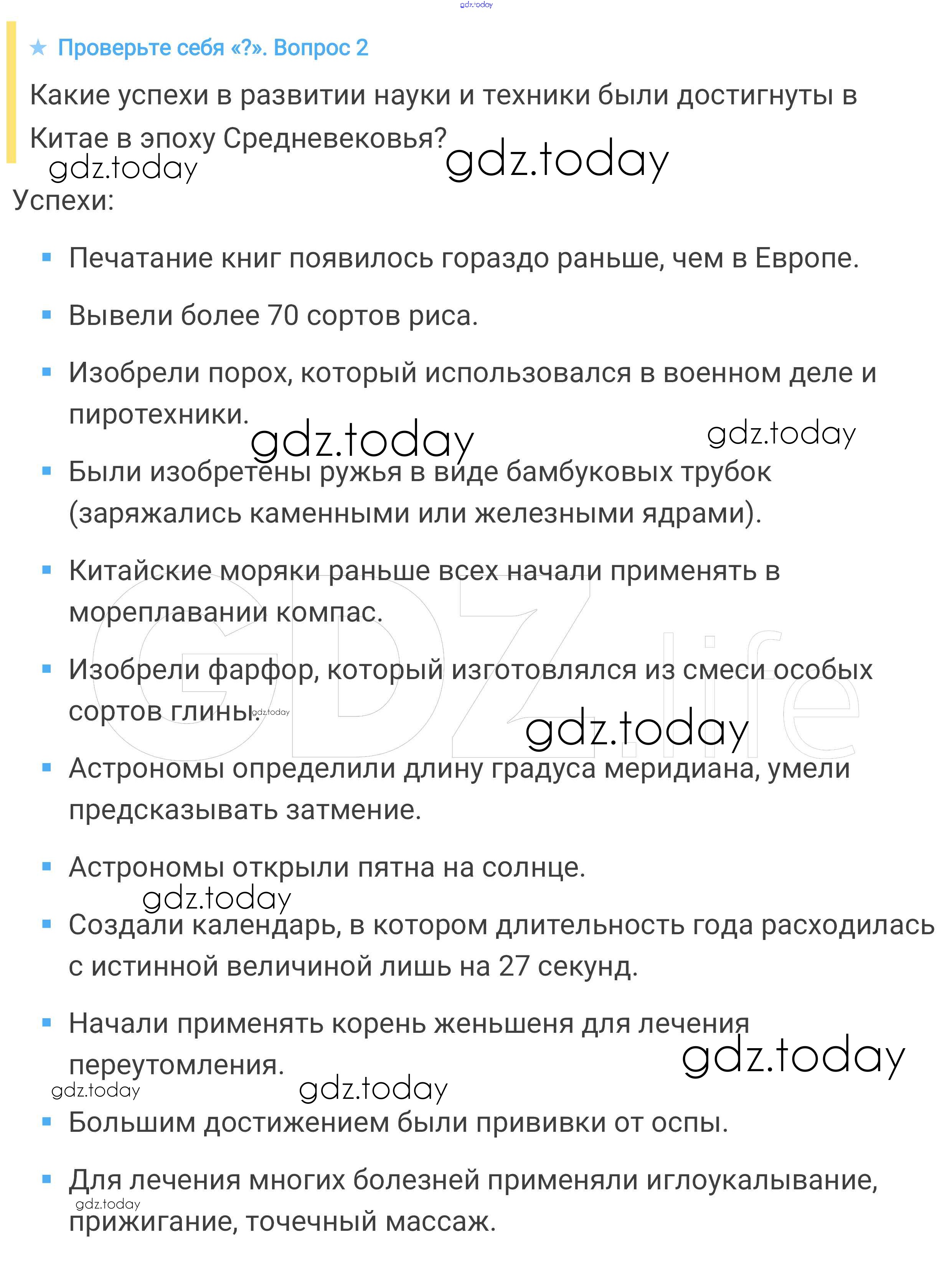 На страницах сайта gdz.today вы найдете учебный и вспомогательный материал, направленный на улучшения знаний школьной программы. ГДЗ - онлайн мир знаний Проверьте себя § 31. Средневековая Азия: Китай, Индия, Япония 2 Учебнику по Всеобщей истории для 6 класса Агибалова, Донской Просвещение 2014
