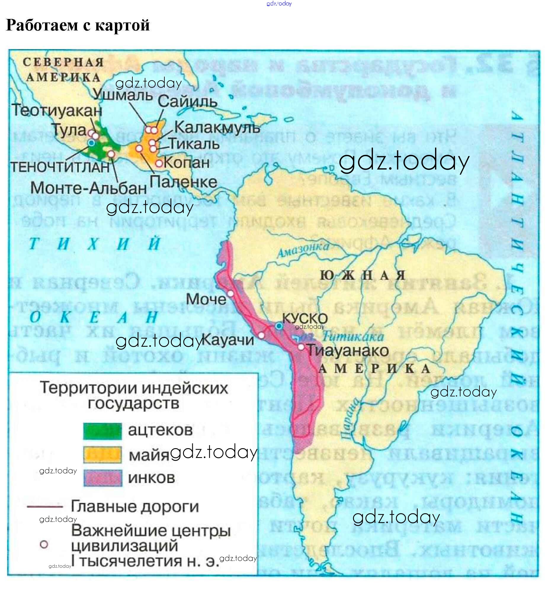 На страницах сайта gdz.today вы найдете учебный и вспомогательный материал, направленный на улучшения знаний школьной программы. ГДЗ - онлайн мир знаний Вопросы к карте § 32. Государства и народы Африки и доколумбовой Америки 1 Учебнику по Всеобщей истории для 6 класса Агибалова, Донской Просвещение 2014