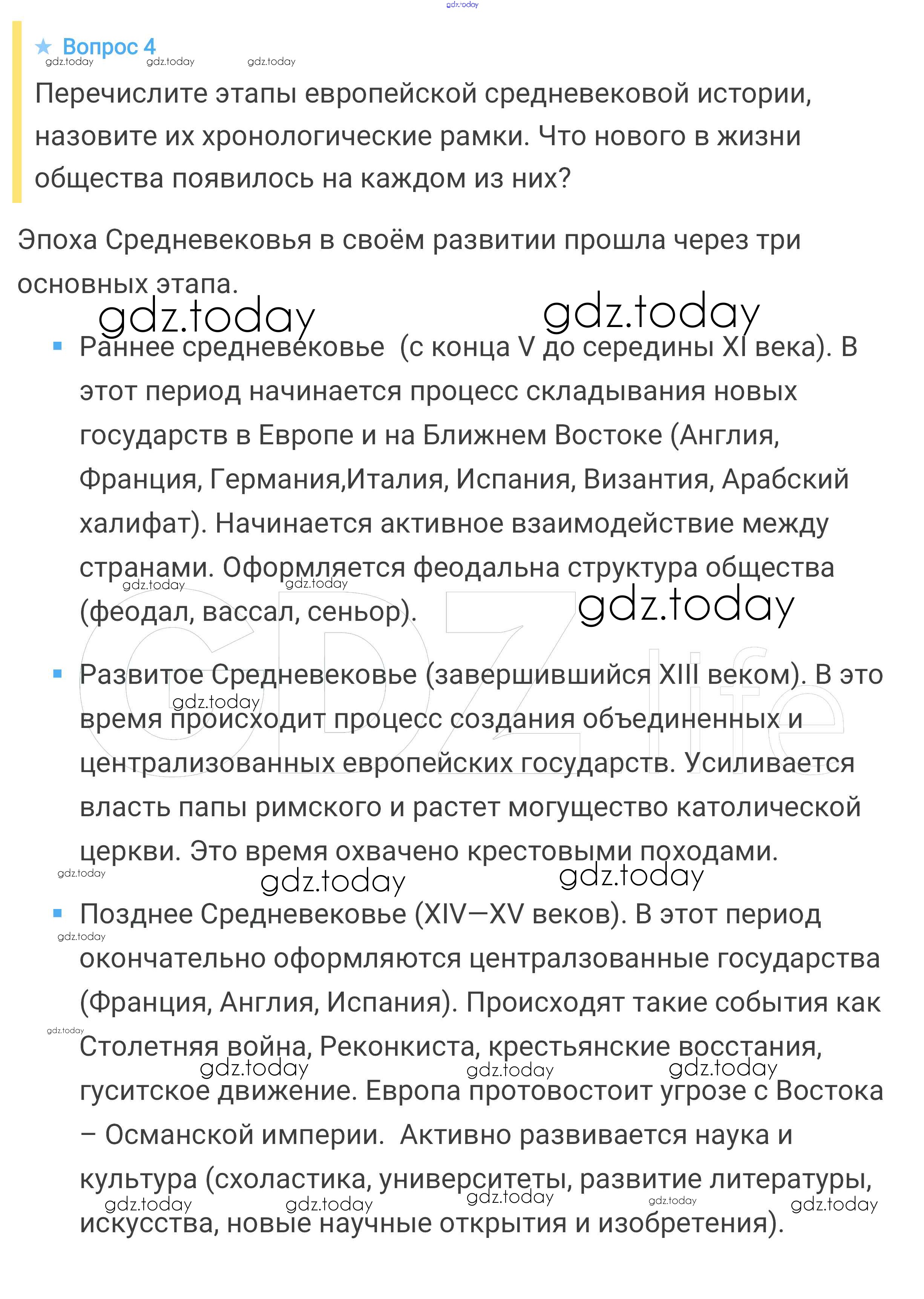 На страницах сайта gdz.today вы найдете учебный и вспомогательный материал, направленный на улучшения знаний школьной программы. ГДЗ - онлайн мир знаний Итоговые вопросы и заданиям к курсу "История Средних веков" 8 Учебнику по Всеобщей истории для 6 класса Агибалова, Донской Просвещение 2014