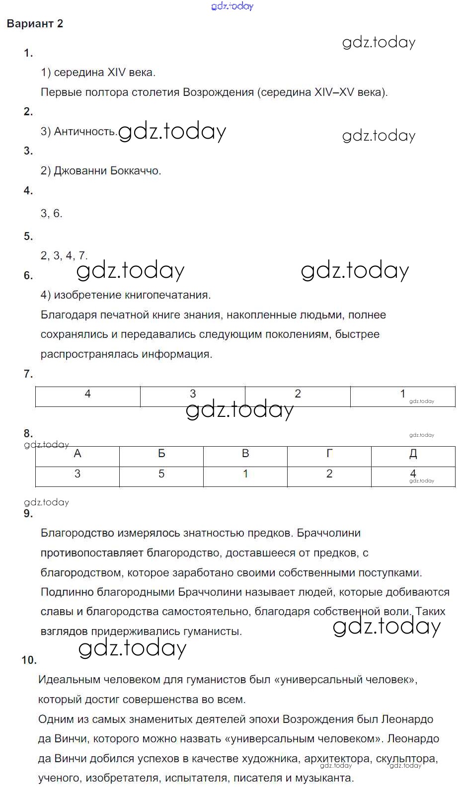 Ответы к ПР №2 Решение к главе 9 вариант-2 Проверочным и контрольным работам по Всеобщей истории для 6 класса Крючкова Просвещение 2014