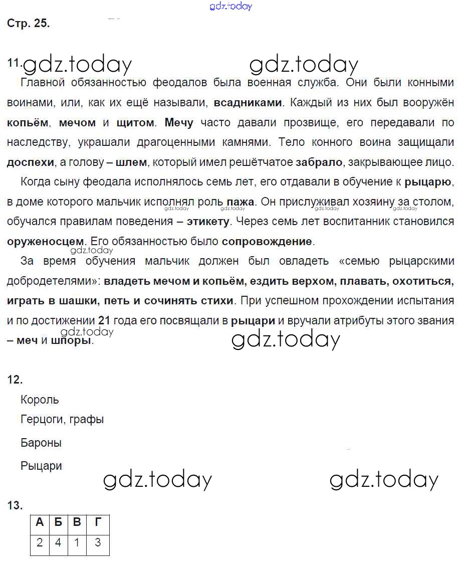 На страницах сайта gdz.today вы найдете учебный и вспомогательный материал, направленный на улучшения знаний школьной программы. ГДЗ - онлайн мир знаний Страницы (решение) 25 Рабочей тетради по Всеобщей истории для 6 класса Колпаков, Пономарев Дрофа Вертикаль 2017