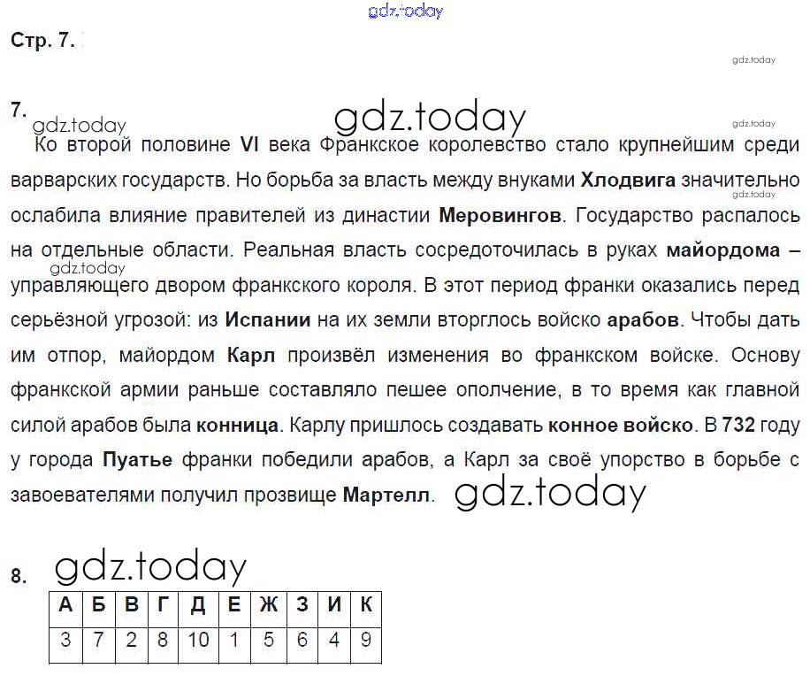 На страницах сайта gdz.today вы найдете учебный и вспомогательный материал, направленный на улучшения знаний школьной программы. ГДЗ - онлайн мир знаний Страницы (решение) 7 Рабочей тетради по Всеобщей истории для 6 класса Колпаков, Пономарев Дрофа Вертикаль 2017