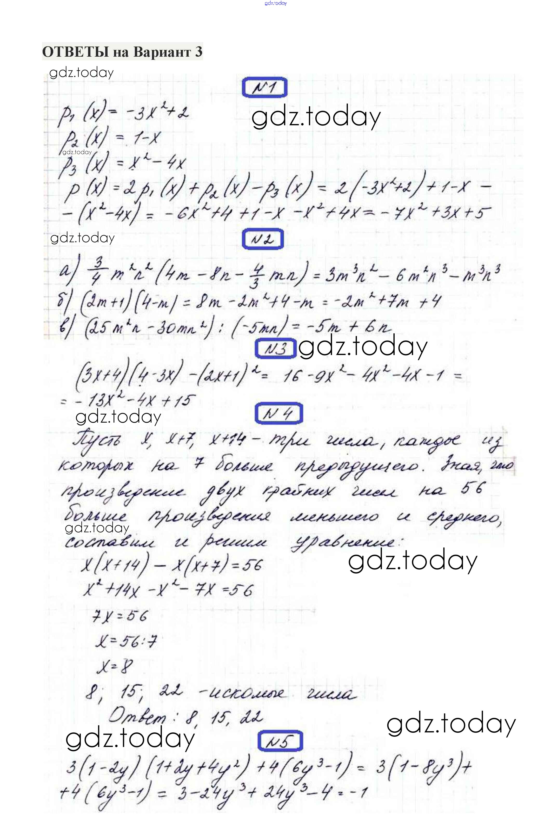 На страницах сайта gdz.today вы найдете учебный и вспомогательный материал, направленный на улучшения знаний школьной программы. ГДЗ - онлайн мир знаний КР-5. Варианты Решение к контрольным работам 3 Контрольным работам по Алгебре для 7 класса Александрова Мнемозина 2017
