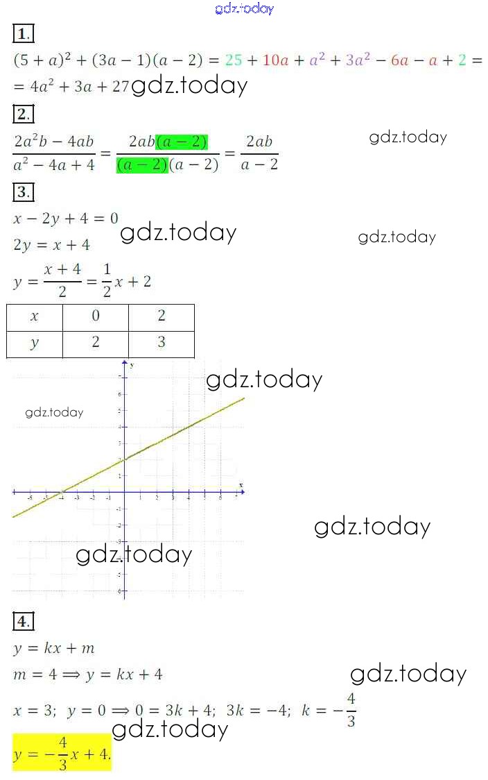 На страницах сайта gdz.today вы найдете учебный и вспомогательный материал, направленный на улучшения знаний школьной программы. ГДЗ - онлайн мир знаний Решение к СР-44. Варианты 2 Самостоятельным работам по Алгебре для 7 класса Александрова Мнемозина УМК 2016