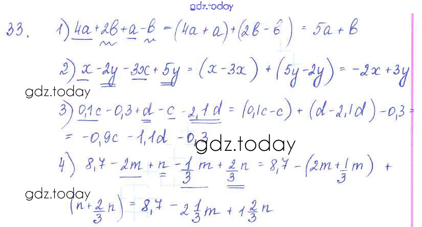 На страницах сайта gdz.today вы найдете учебный и вспомогательный материал, направленный на улучшения знаний школьной программы. ГДЗ - онлайн мир знаний §4. Свойства арифметических действий Решение к главе 1. Алгебраические выражения 33 Учебнику по Алгебре для 7 класса Колягин, Ткачёва Просвещение 2014