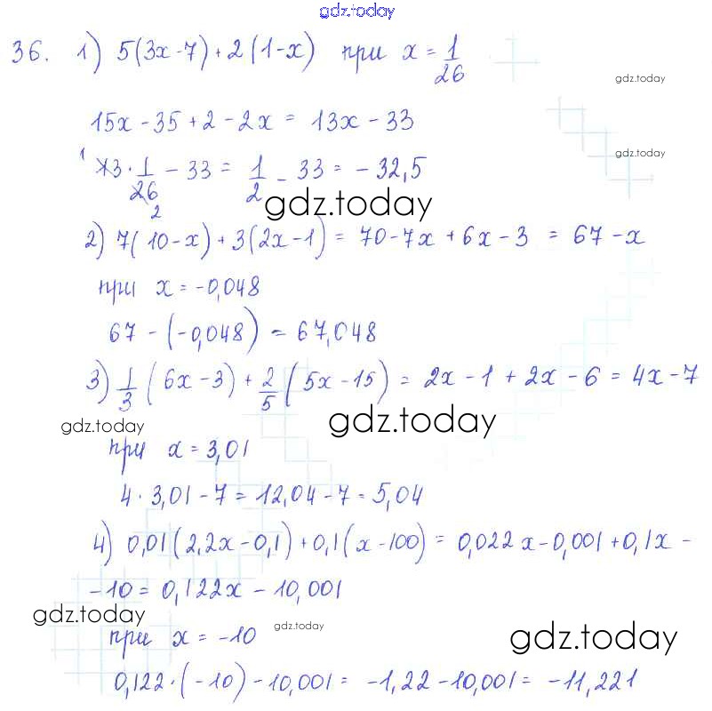 На страницах сайта gdz.today вы найдете учебный и вспомогательный материал, направленный на улучшения знаний школьной программы. ГДЗ - онлайн мир знаний §4. Свойства арифметических действий Решение к главе 1. Алгебраические выражения 36 Учебнику по Алгебре для 7 класса Колягин, Ткачёва Просвещение 2014