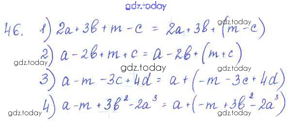На страницах сайта gdz.today вы найдете учебный и вспомогательный материал, направленный на улучшения знаний школьной программы. ГДЗ - онлайн мир знаний §5. Правила раскрытия скобок Решение к главе 1. Алгебраические выражения 46 Учебнику по Алгебре для 7 класса Колягин, Ткачёва Просвещение 2014