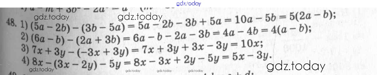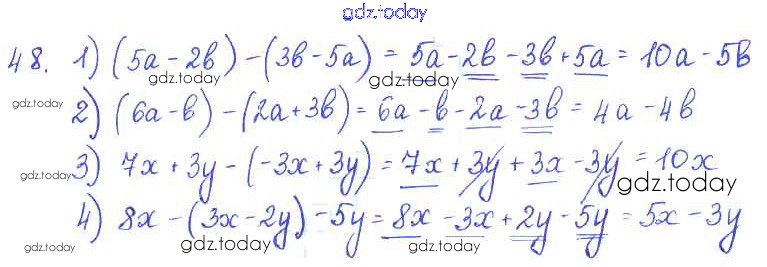 На страницах сайта gdz.today вы найдете учебный и вспомогательный материал, направленный на улучшения знаний школьной программы. ГДЗ - онлайн мир знаний §5. Правила раскрытия скобок Решение к главе 1. Алгебраические выражения 48 Учебнику по Алгебре для 7 класса Колягин, Ткачёва Просвещение 2014