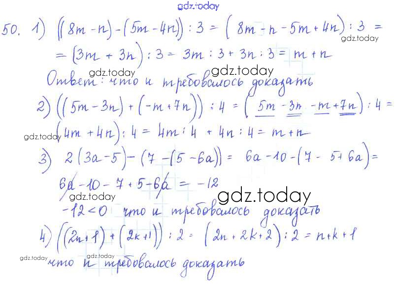 На страницах сайта gdz.today вы найдете учебный и вспомогательный материал, направленный на улучшения знаний школьной программы. ГДЗ - онлайн мир знаний §5. Правила раскрытия скобок Решение к главе 1. Алгебраические выражения 50 Учебнику по Алгебре для 7 класса Колягин, Ткачёва Просвещение 2014