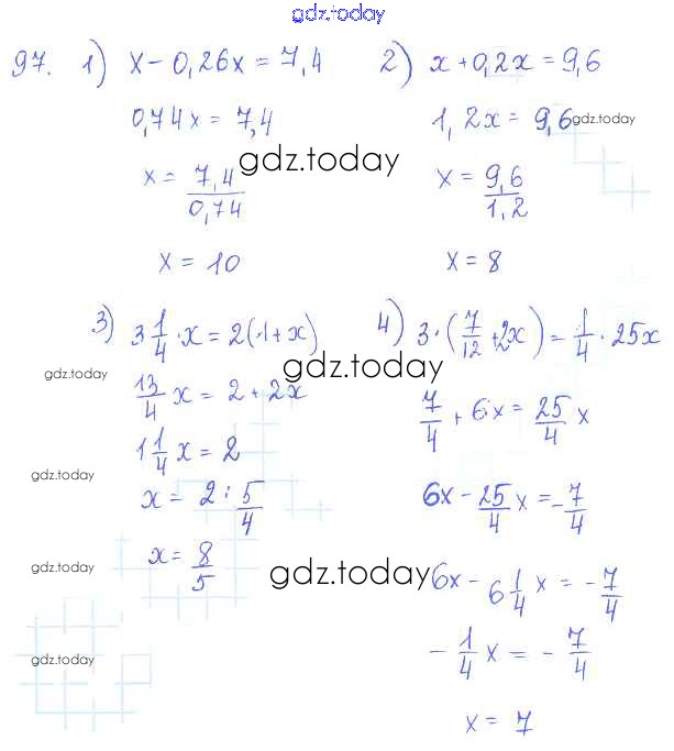На страницах сайта gdz.today вы найдете учебный и вспомогательный материал, направленный на улучшения знаний школьной программы. ГДЗ - онлайн мир знаний §7. Решение уравнений с одним неизвестным, сводящихся к линейным Решение к главе 2. Уравнения с одним неизвестным 97 Учебнику по Алгебре для 7 класса Колягин, Ткачёва Просвещение 2014