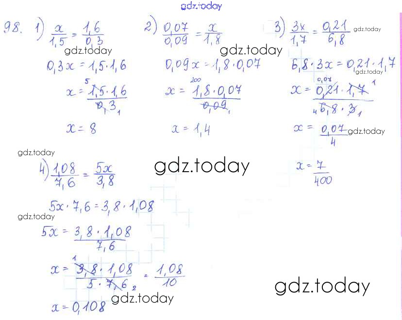 Ответы к §7. Решение уравнений с одним неизвестным, сводящихся к линейным Решение к главе 2. Уравнения с одним неизвестным 98 Учебнику по Алгебре для 7 класса Колягин, Ткачёва Просвещение 2014