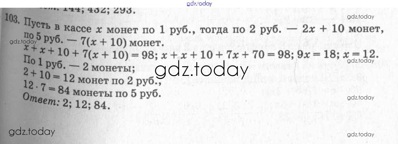 Ответы к §8. Решение задач с помощью уравнений Решение к главе 2. Уравнения с одним неизвестным 103 Учебнику по Алгебре для 7 класса Колягин, Ткачёва Просвещение 2014