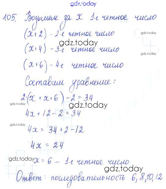На страницах сайта gdz.today вы найдете учебный и вспомогательный материал, направленный на улучшения знаний школьной программы. ГДЗ - онлайн мир знаний §8. Решение задач с помощью уравнений Решение к главе 2. Уравнения с одним неизвестным 105 Учебнику по Алгебре для 7 класса Колягин, Ткачёва Просвещение 2014
