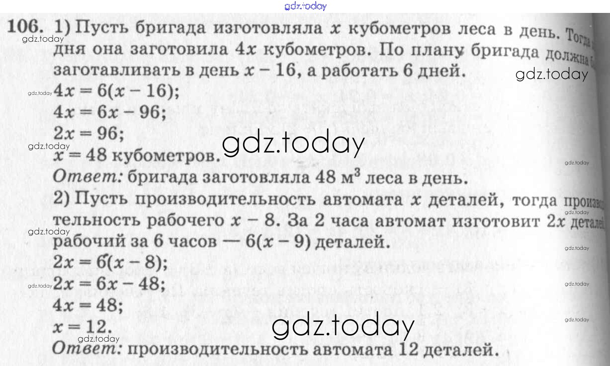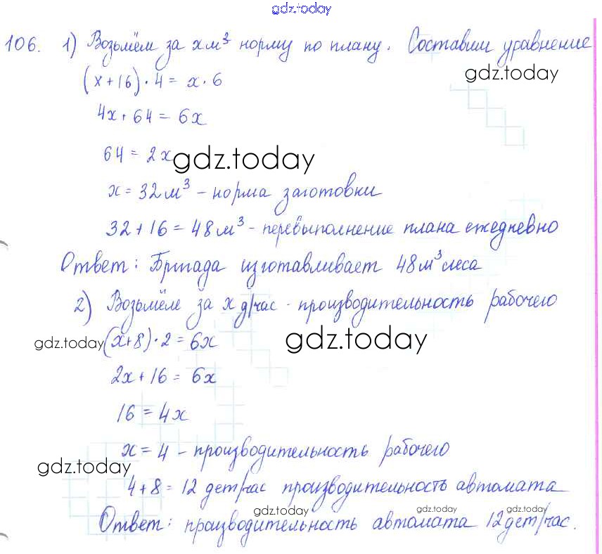 Ответы к §8. Решение задач с помощью уравнений Решение к главе 2. Уравнения с одним неизвестным 106 Учебнику по Алгебре для 7 класса Колягин, Ткачёва Просвещение 2014