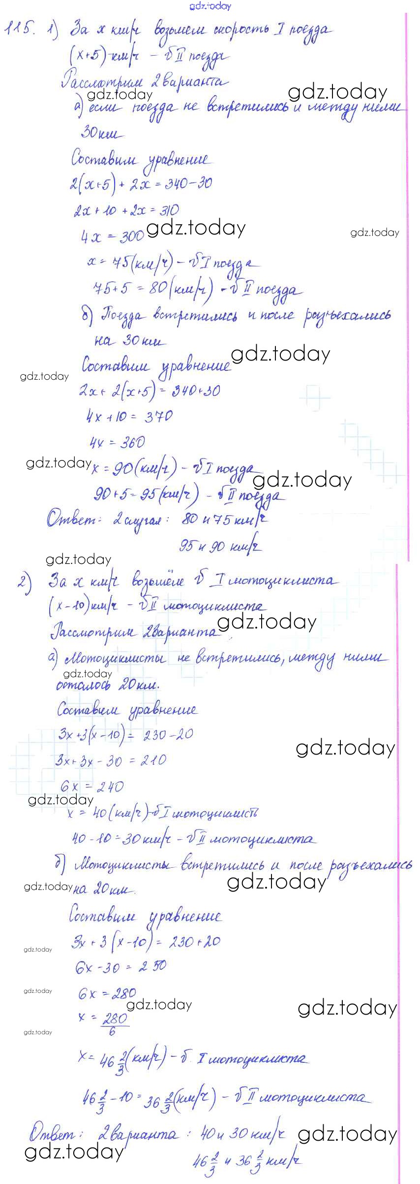 Ответы к §8. Решение задач с помощью уравнений Решение к главе 2. Уравнения с одним неизвестным 115 Учебнику по Алгебре для 7 класса Колягин, Ткачёва Просвещение 2014