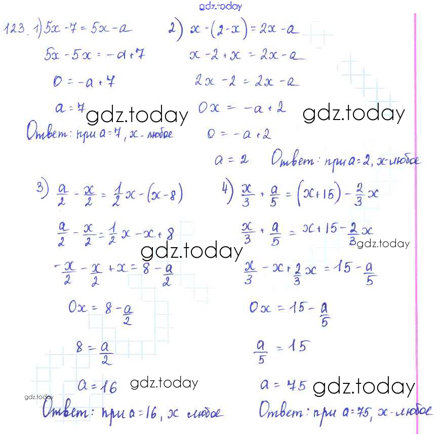 Ответы к Упражнения к главе 2 Решение к главе 2. Уравнения с одним неизвестным 123 Учебнику по Алгебре для 7 класса Колягин, Ткачёва Просвещение 2014
