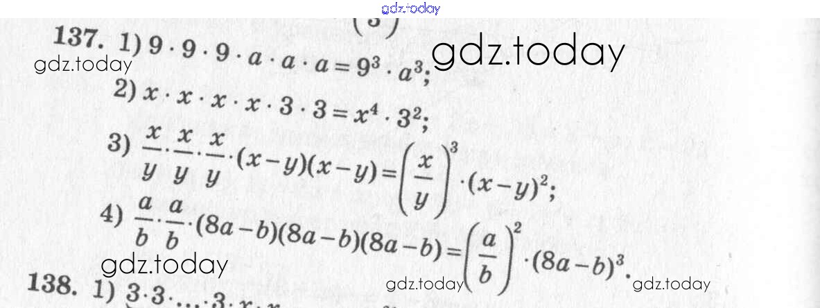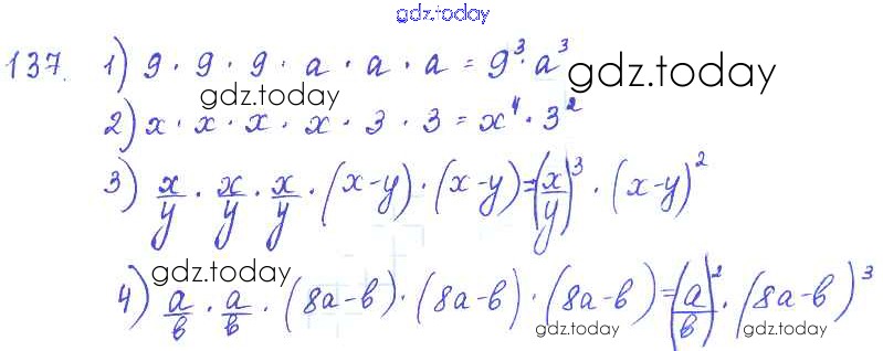 На страницах сайта gdz.today вы найдете учебный и вспомогательный материал, направленный на улучшения знаний школьной программы. ГДЗ - онлайн мир знаний §9. Степень с натуральным показателем Решение к главе 3. Одночлены и многочлены 137 Учебнику по Алгебре для 7 класса Колягин, Ткачёва Просвещение 2014