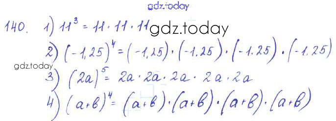 На страницах сайта gdz.today вы найдете учебный и вспомогательный материал, направленный на улучшения знаний школьной программы. ГДЗ - онлайн мир знаний §9. Степень с натуральным показателем Решение к главе 3. Одночлены и многочлены 140 Учебнику по Алгебре для 7 класса Колягин, Ткачёва Просвещение 2014