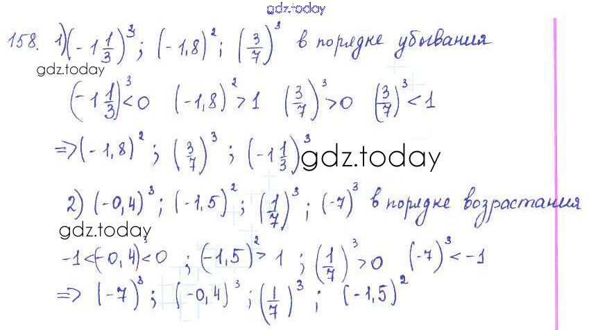 На страницах сайта gdz.today вы найдете учебный и вспомогательный материал, направленный на улучшения знаний школьной программы. ГДЗ - онлайн мир знаний §9. Степень с натуральным показателем Решение к главе 3. Одночлены и многочлены 158 Учебнику по Алгебре для 7 класса Колягин, Ткачёва Просвещение 2014