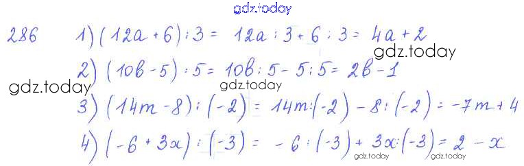 Ответы к §18. Деление одночлена и многочлена на одночлен Решение к главе 3. Одночлены и многочлены 286 Учебнику по Алгебре для 7 класса Колягин, Ткачёва Просвещение 2014