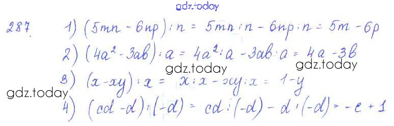 Ответы к §18. Деление одночлена и многочлена на одночлен Решение к главе 3. Одночлены и многочлены 287 Учебнику по Алгебре для 7 класса Колягин, Ткачёва Просвещение 2014