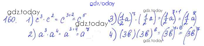 На страницах сайта gdz.today вы найдете учебный и вспомогательный материал, направленный на улучшения знаний школьной программы. ГДЗ - онлайн мир знаний §10. Свойства степени с натуральным показателем Решение к главе 3. Одночлены и многочлены 160 Учебнику по Алгебре для 7 класса Колягин, Ткачёва Просвещение 2014