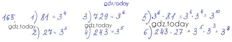 На страницах сайта gdz.today вы найдете учебный и вспомогательный материал, направленный на улучшения знаний школьной программы. ГДЗ - онлайн мир знаний §10. Свойства степени с натуральным показателем Решение к главе 3. Одночлены и многочлены 165 Учебнику по Алгебре для 7 класса Колягин, Ткачёва Просвещение 2014