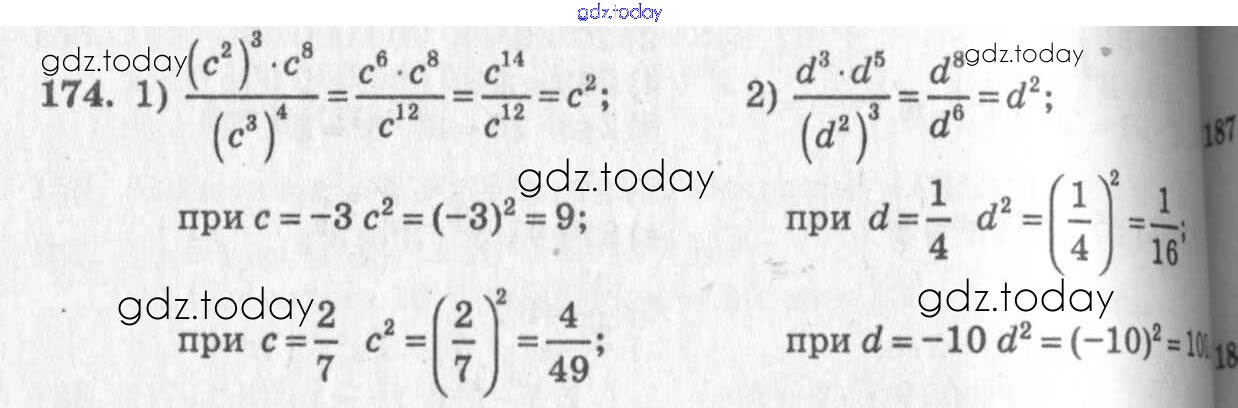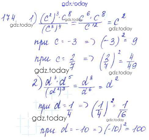 На страницах сайта gdz.today вы найдете учебный и вспомогательный материал, направленный на улучшения знаний школьной программы. ГДЗ - онлайн мир знаний §10. Свойства степени с натуральным показателем Решение к главе 3. Одночлены и многочлены 174 Учебнику по Алгебре для 7 класса Колягин, Ткачёва Просвещение 2014